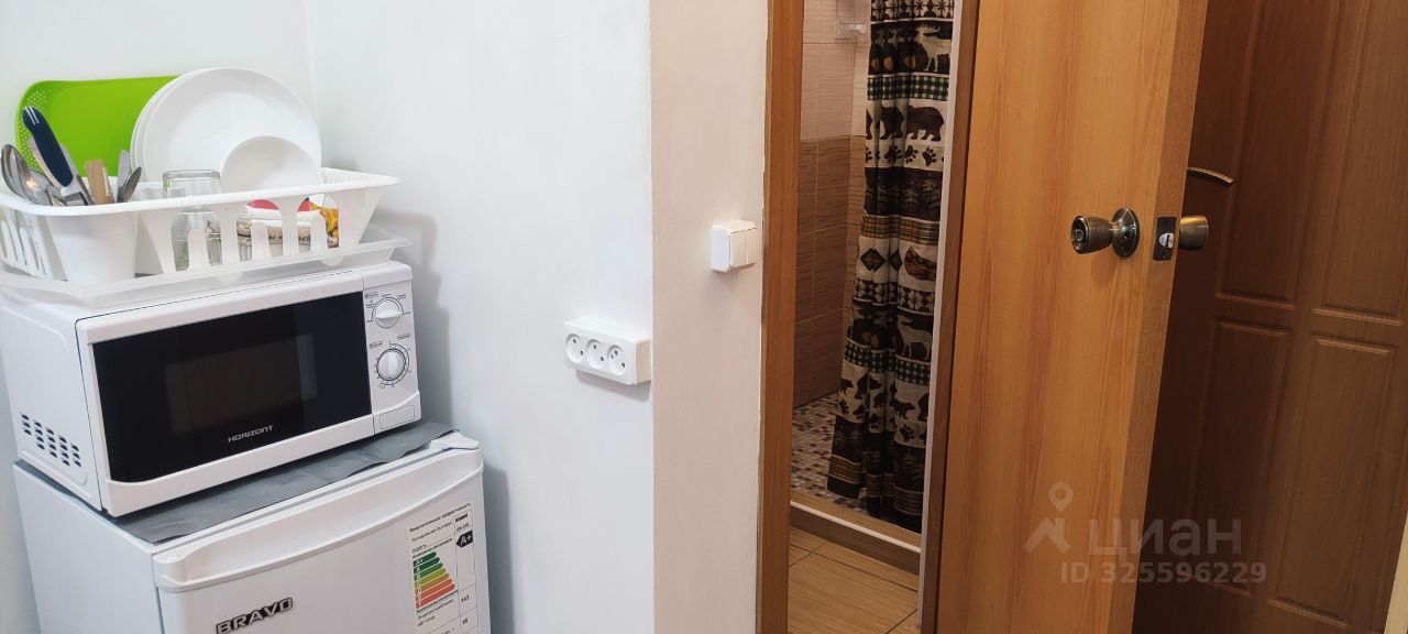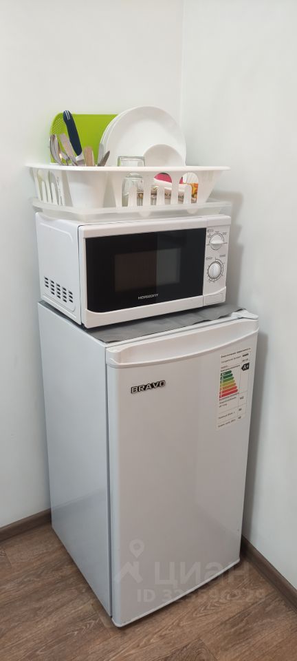 Все необходимое есть: Диван-кровать Икея Бединге, стол, шкаф, холодильник, СВЧ, индукционная плитка, чайник, посуда, стиральная машинка, утюг.