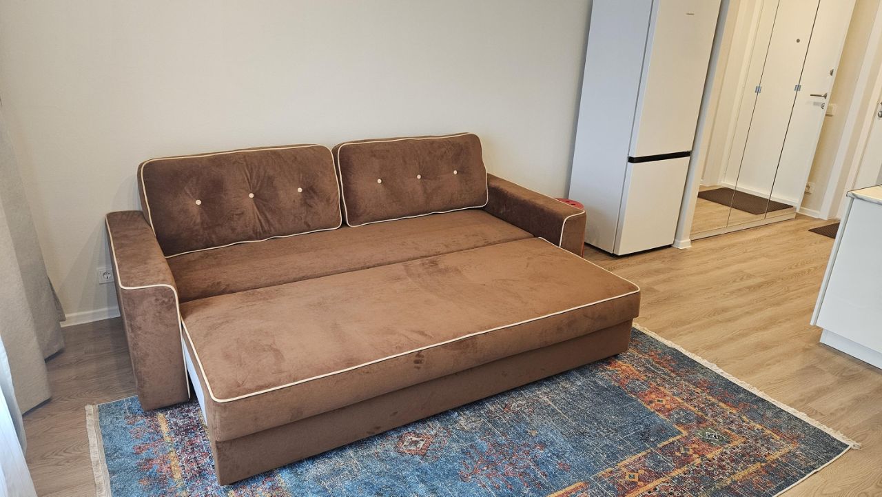 В квартире есть все необходимое: новый смарт ТВ, wi-fi, стиральная машина, холодильник, варочная панель, чайник, утюг, пылесос, посуда и столовые приборы. Дорогои раскладнои диван с удобным спальным местом 160х200 см. Большои шкаф для хранения. Установлен кондиционер, в квартире комфортно в любое время года.