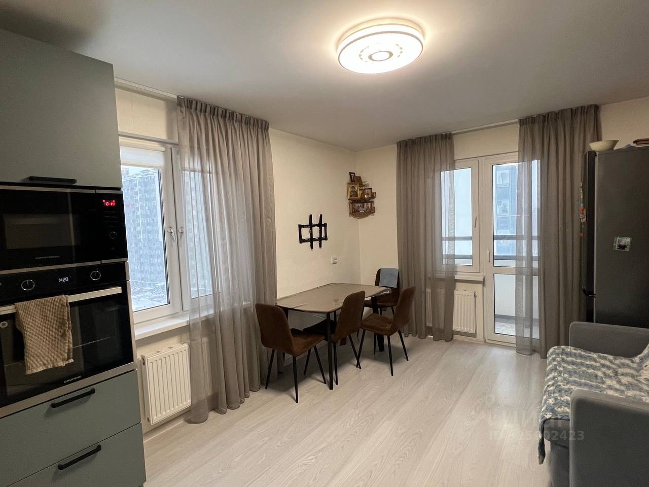 Сдаётся двухкомнатная квартира с большой кухней на длительный срок. В квартире есть все необходимое для комфортного проживания: диваны раскладные, кухонный гарнитур, плита, микроволновая печь, холодильник, стиральная машина, стол и стулья, и многое др. Хорошо развита инфраструктура: аптека, гипермаркеты, продуктовый магазин, автобусная остановка и многое др. До метро Проспект Просвещения 10 минут на общественном транспорте. Просмотры по договоренности