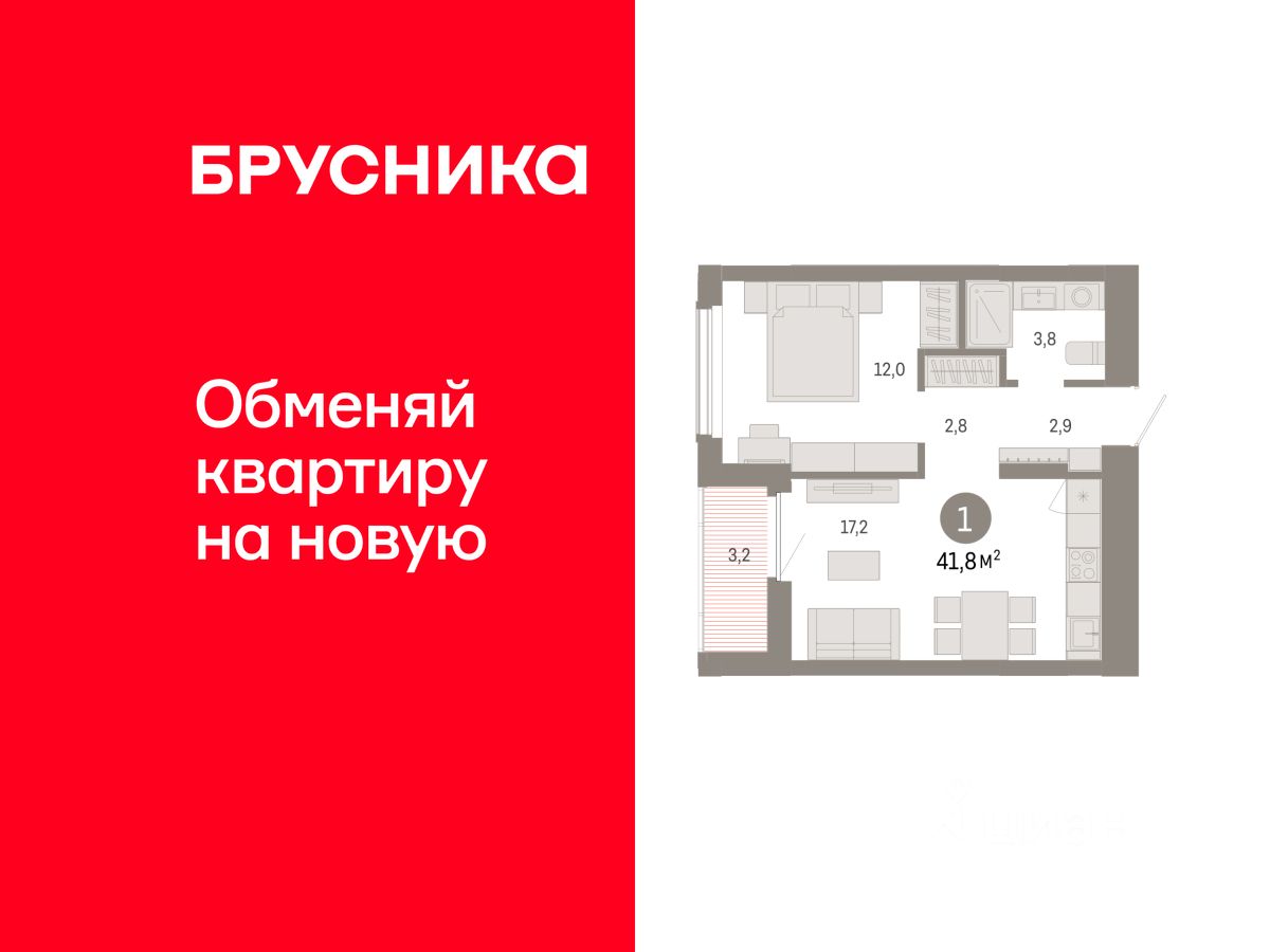 Однокомнатная квартира от застройщика с предчистовой отделкой в Кварталы Драверта на 11 этаже. Общая площадь: 41.84 кв.м. Высота потолков 2.82 м.