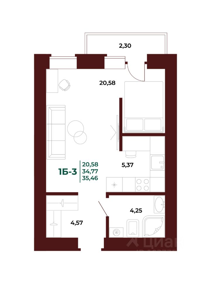Общая площадь35,44 м2