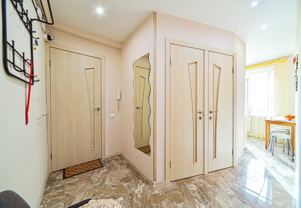 Выполнен свежий качественный ремонт, квартира полностью готова к проживанию. Продаётся с мебелью и бытовой техникой — можно заехать и жить без дополнительных вложений. Просторная комната площадью 20 кв. м, кухня — 6 кв. м. Санузел раздельный. Есть открытый балкон.