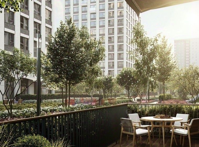 Во дворе нет машин. Это приватное пространство, попасть в которое могут только жители. Здесь спроектированы: променад, лаунжи с садовой мебелью, где, развалившись на шезлонге, можно почитать или поработать, и детские площадки.