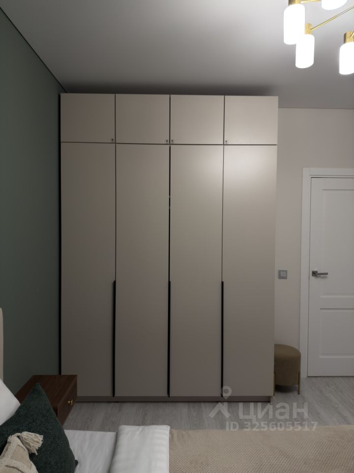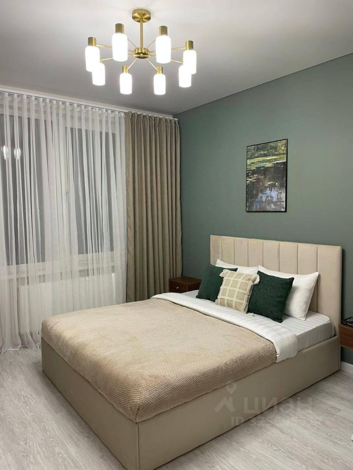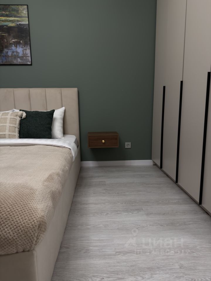 Квартира тихая — окна выходят во двор. Спальня с большим шкафом, достаточно мест хранения без перегруженности пространства.