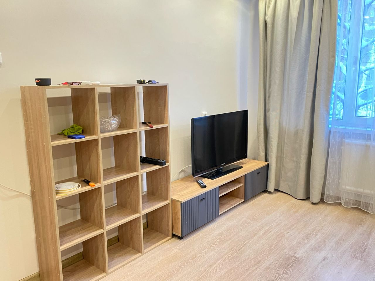 В квартире есть всё необходимое: стиральная машина, холодильник, микроволновка, газовая плита с газ-контролем, проведен интернет (роутер wi-fi). В просторной комнате встроенная гардеробная. Сделан небольшой косметический ремонт, переклеены обои, заменена сантехника (смесители). В комнате новая мебель.