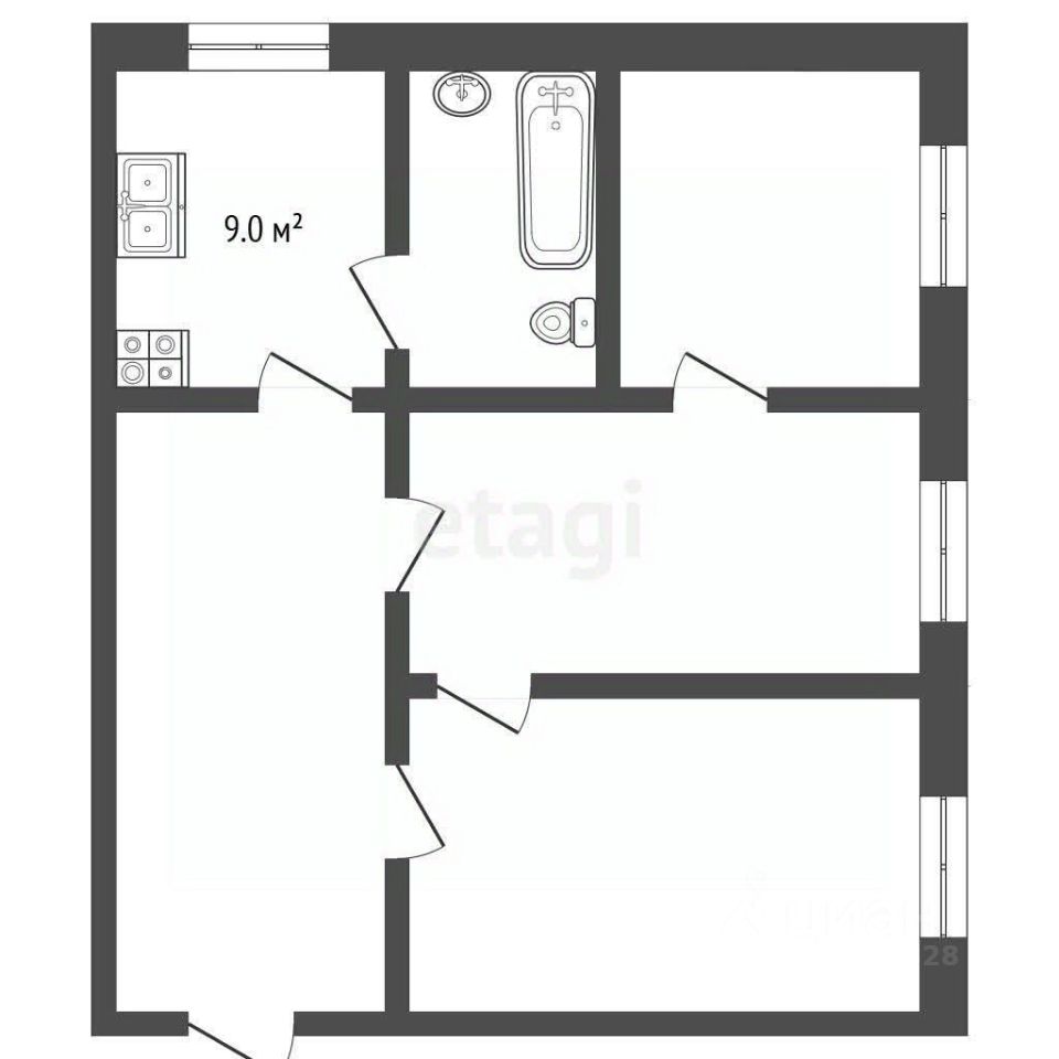 продам 3-к, Гагарина, 281 100 000 ₽