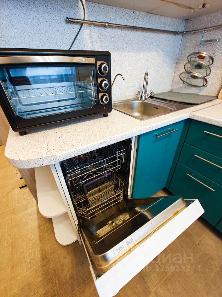 - удобная компактная кухня с диваном и посудомоечной машиной