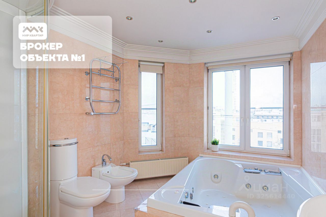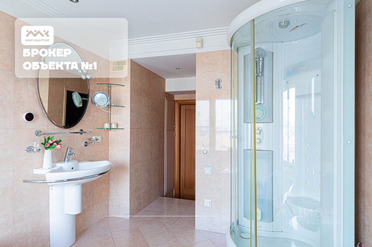 Преимущества квартиры Уникальная планировка с панорамными видами (окна на 3 стороны). Премиальная отделка и мебель (Италия). 4 комнаты: 2 спальни, гостиная 39 кв. м, кабинет (возможно установить камин). 2 санузла: гостевой и семейный (сауна, двухместная джакузи с гидро и воздушным массажем, душевая, унитаз, биде). Просторный коридор со встроенной нишей для хранения (6570 см). 2 лоджии. 8й этаж. 2 квартиры на этаже — камерность и уединённость. Качественный ЖКС, доброжелательные соседи.