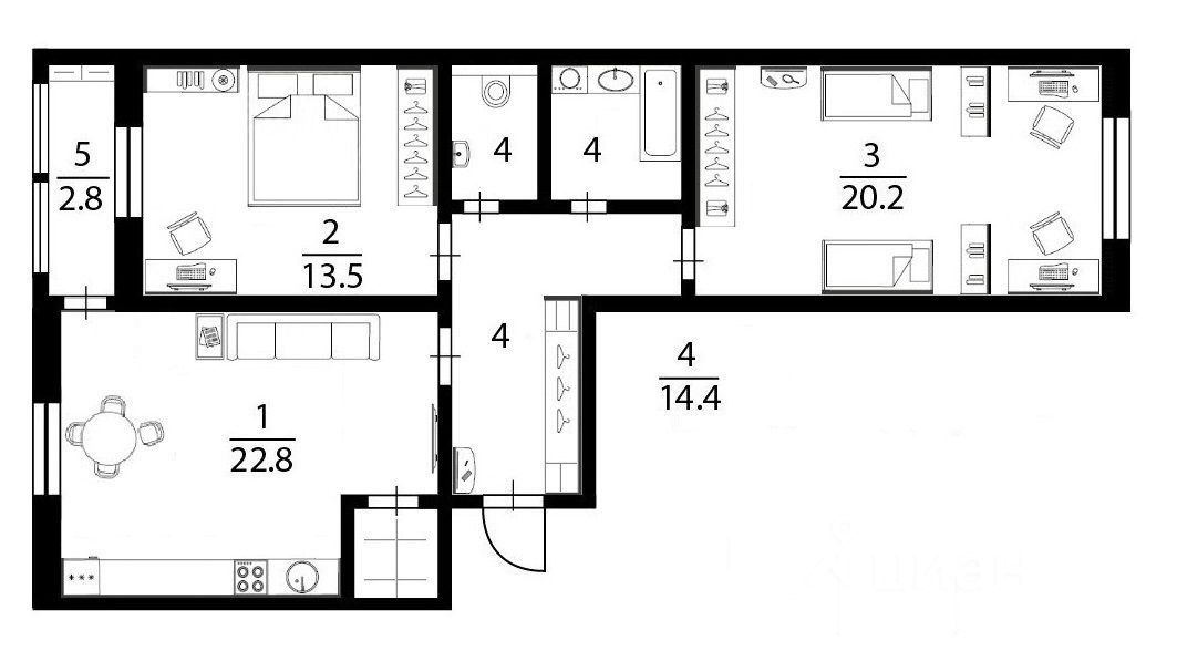 Просторная квартира с евро-планировкой общей площадью 71 м2 Кухня-гостиная 23 м2, спальня 13,5 м2 и детская 22 м2. Квартира светлая, с современным ремонтом, выполненным с использованием качественных материалов. Для комфортного проживания есть вся необходимая мебель и бытовая техника.