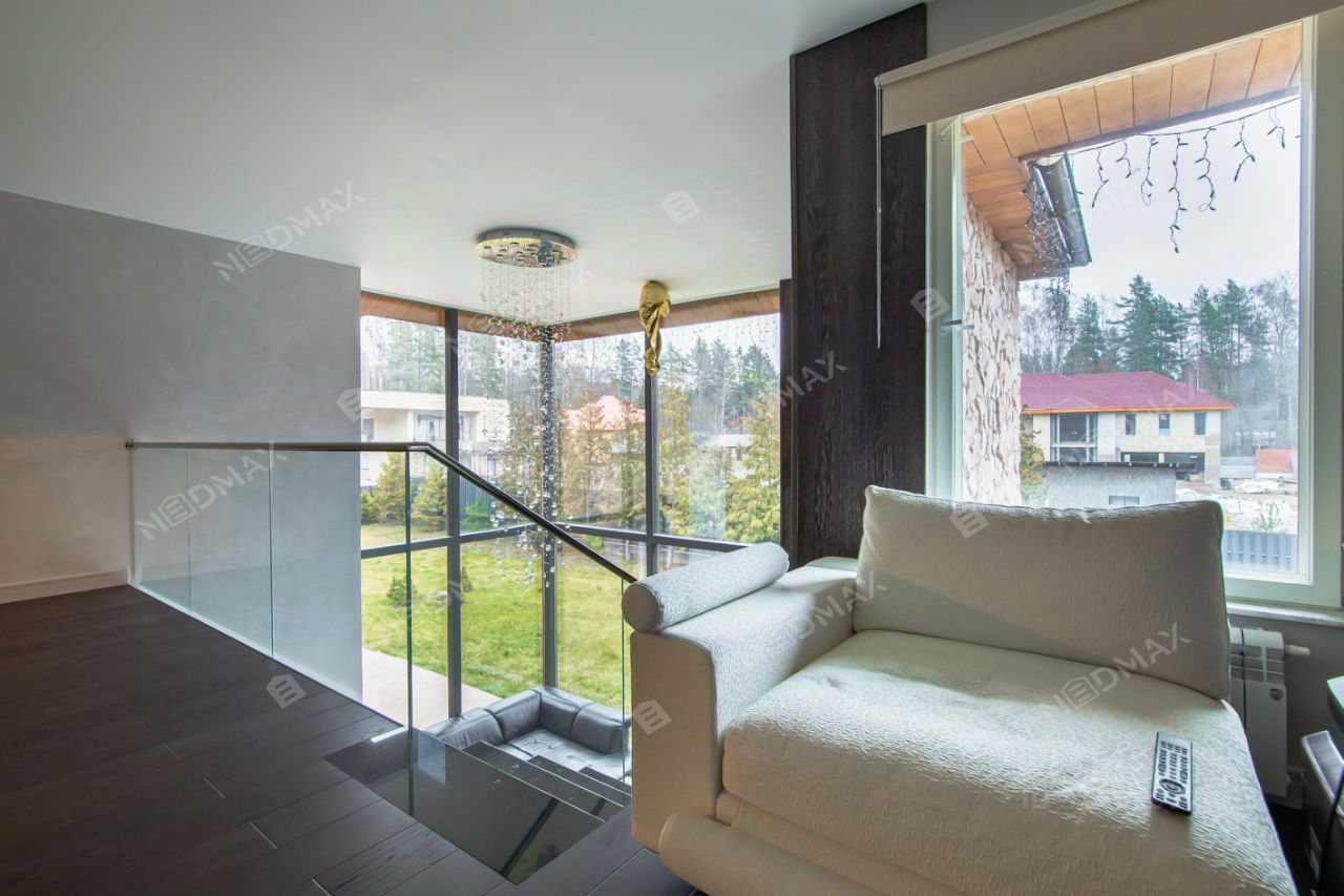 Преимущества дома: • Удобная планировка: на первом этаже вас встретит просторная гостиная, кухня-столовая, спальня с гардеробной и собственным санузлом, а также гостевой санузел и хозяйственная комната. Два выхода на террасу позволят наслаждаться свежим воздухом и природой. • На втором этаже расположены кабинет и три спальни с индивидуальными гардеробными и санузлами.