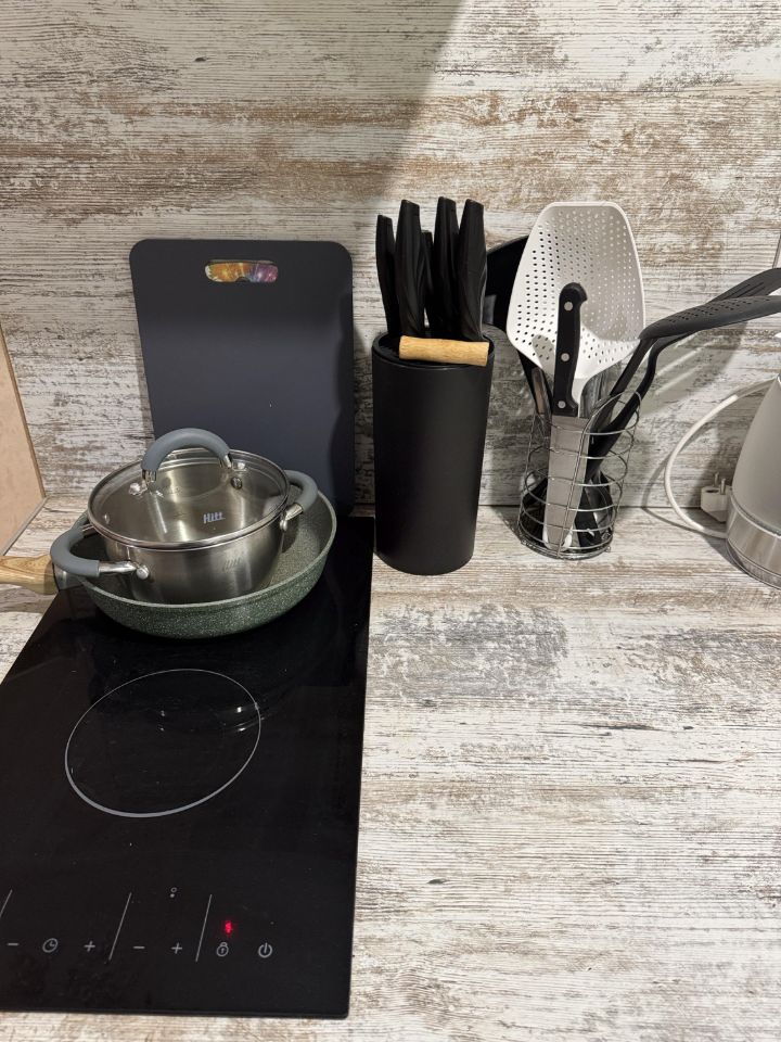 Вся необходимая бытовая техника (стиральная машинка, холодильник, фен, телевизор со Smart TV, утюг, микроволновая печь, чайник, электрическая плита),