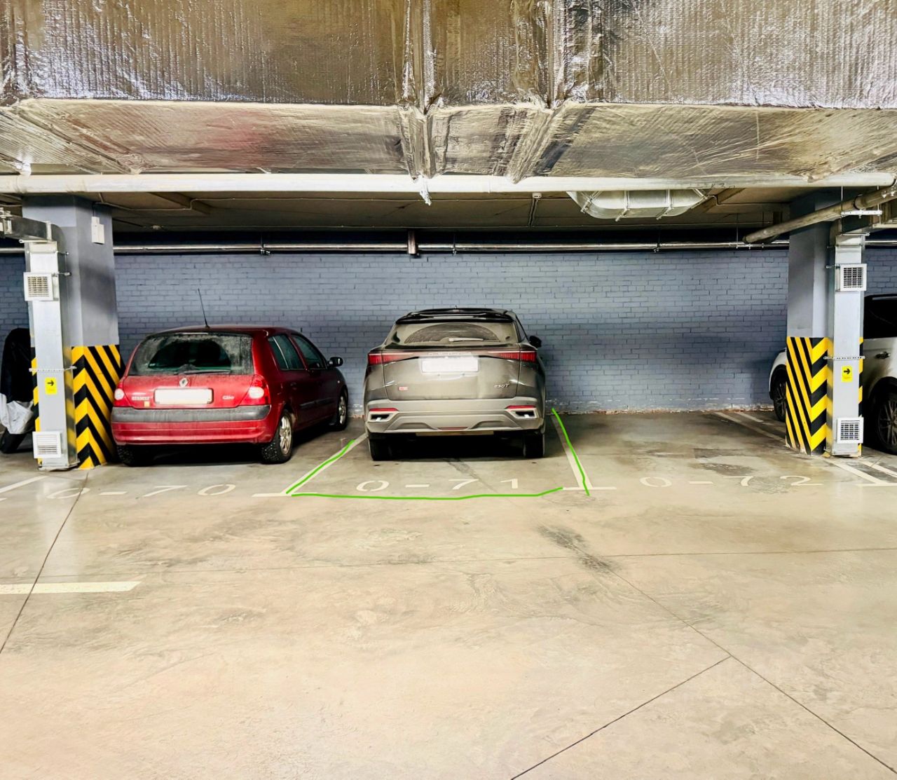 Удобное расположение на паркинге: Место стоит отдельно, не ограничено колоннами. Можно высаживать пассажиров без неудобств, открывая все двери.