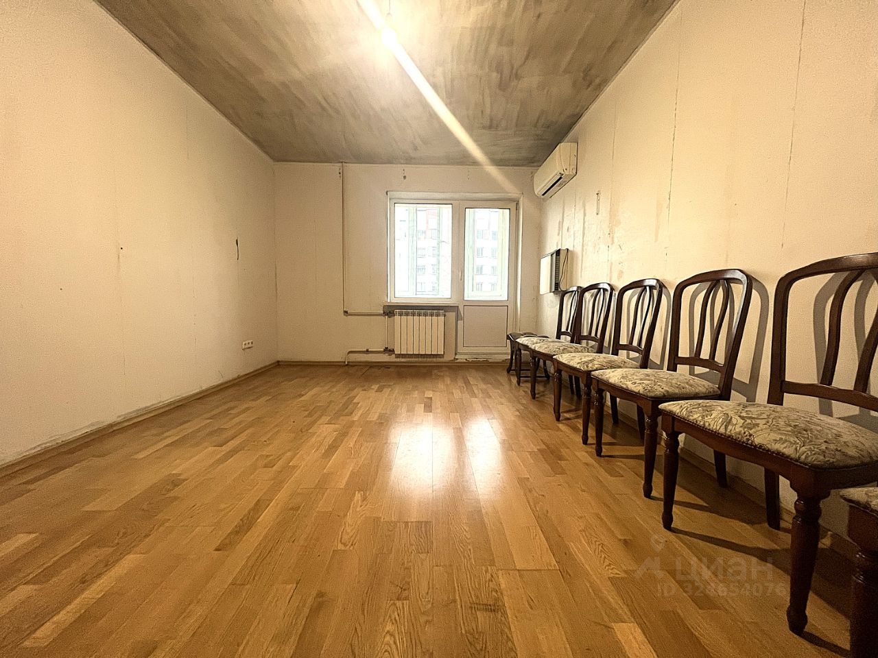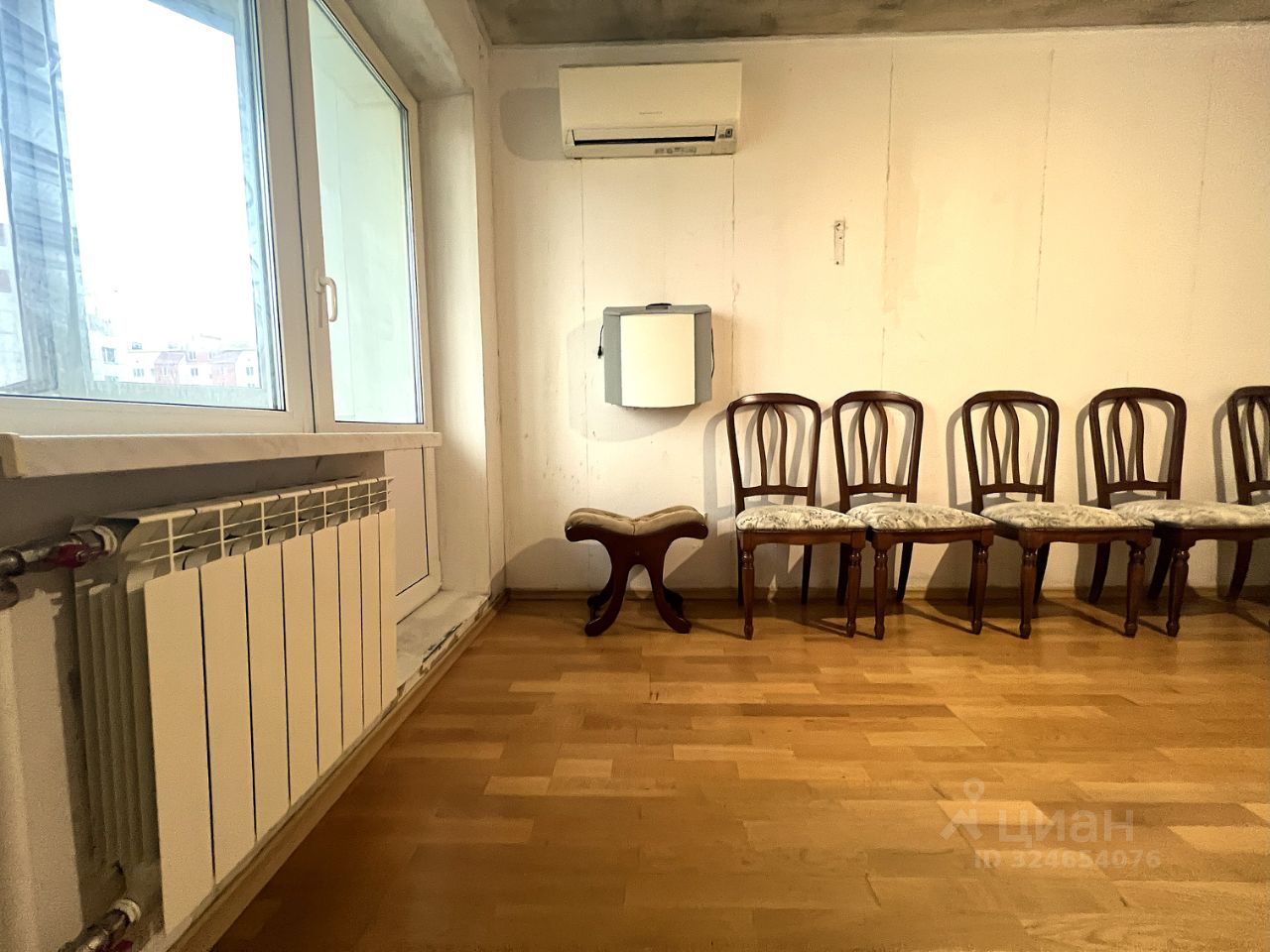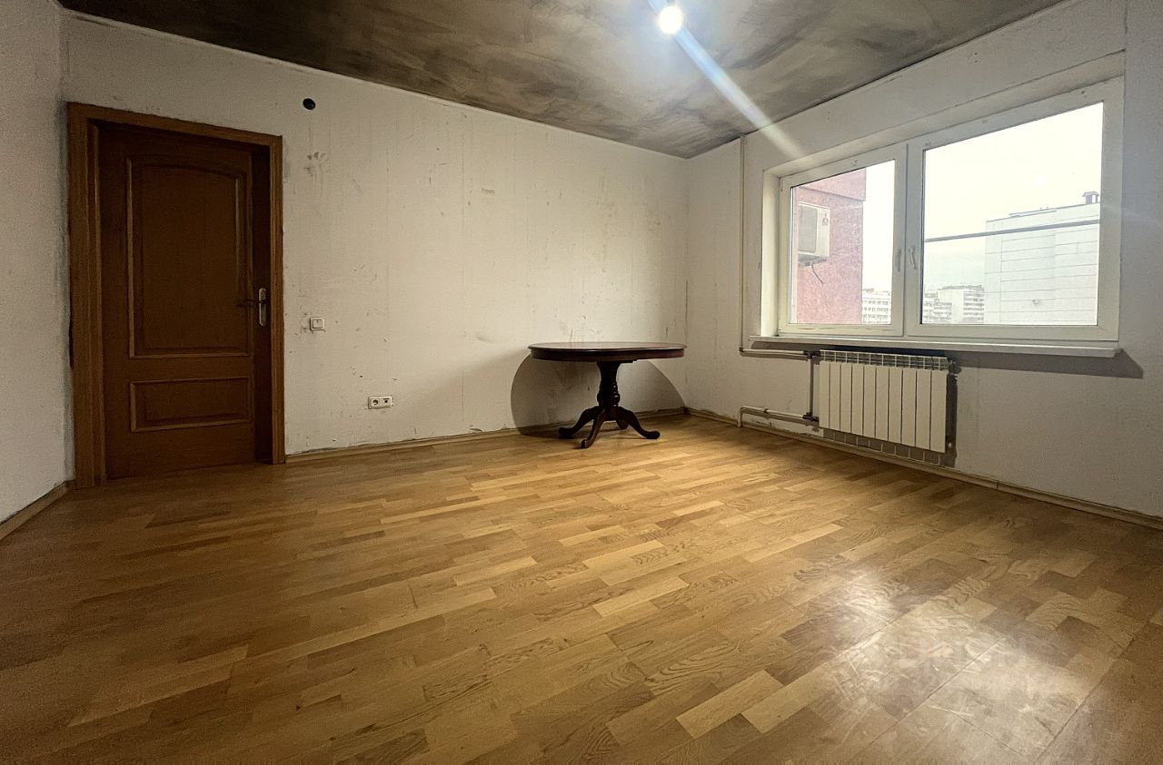 Комнаты и кухня квадратной формы, просторный холл, рядом на этаже еще 2 квартиры, окна сморят во двор, лоджия застеклена, установлены кондиционеры и КИВ. Двери из массива, на полу паркетная доска в комнатах и плитка во всех остальных местах.