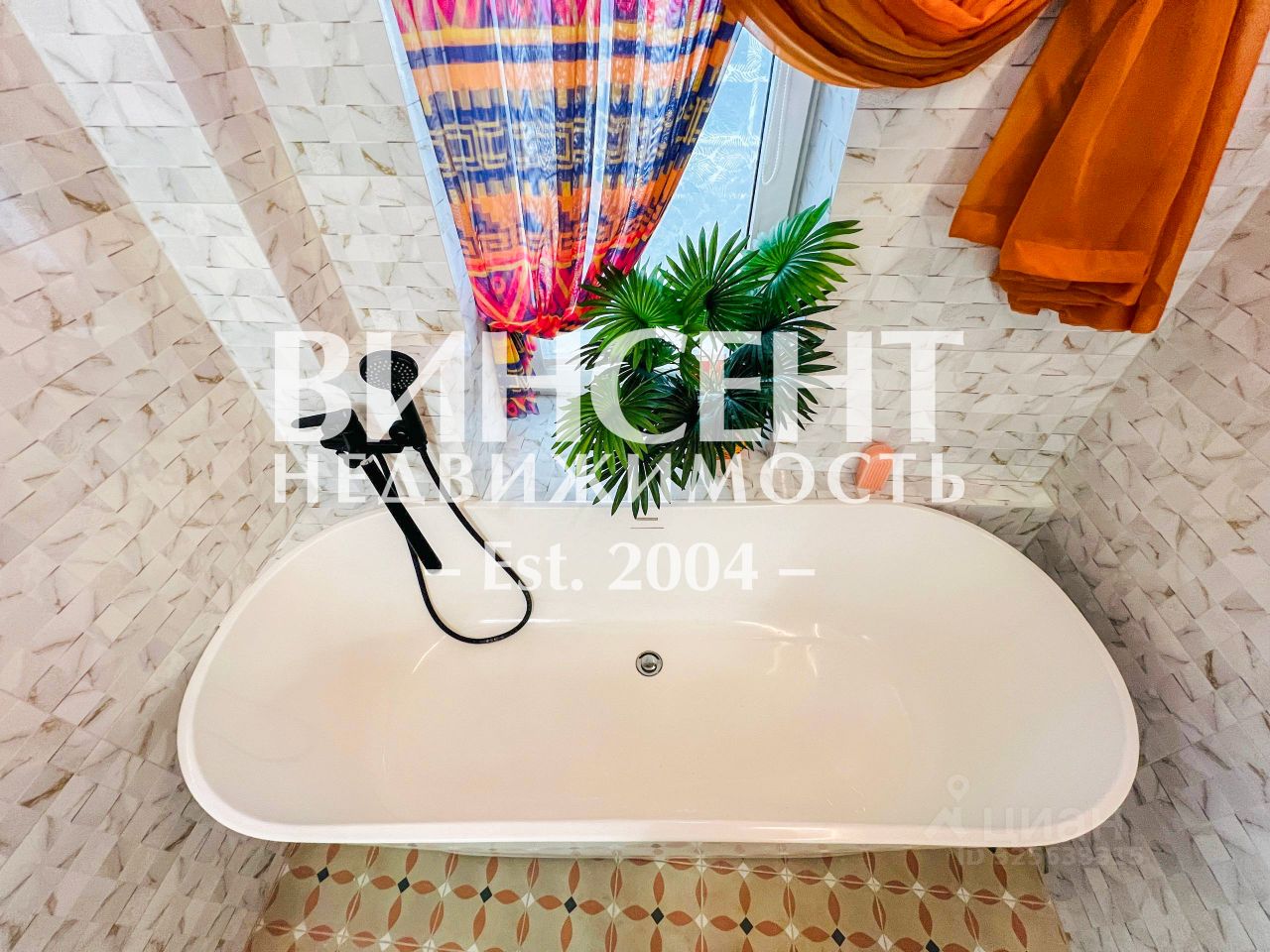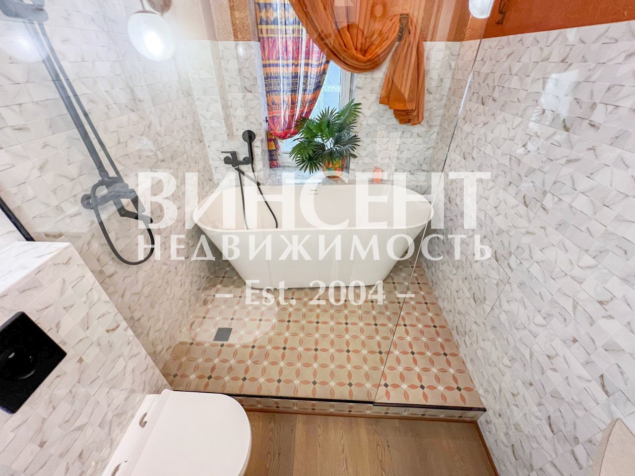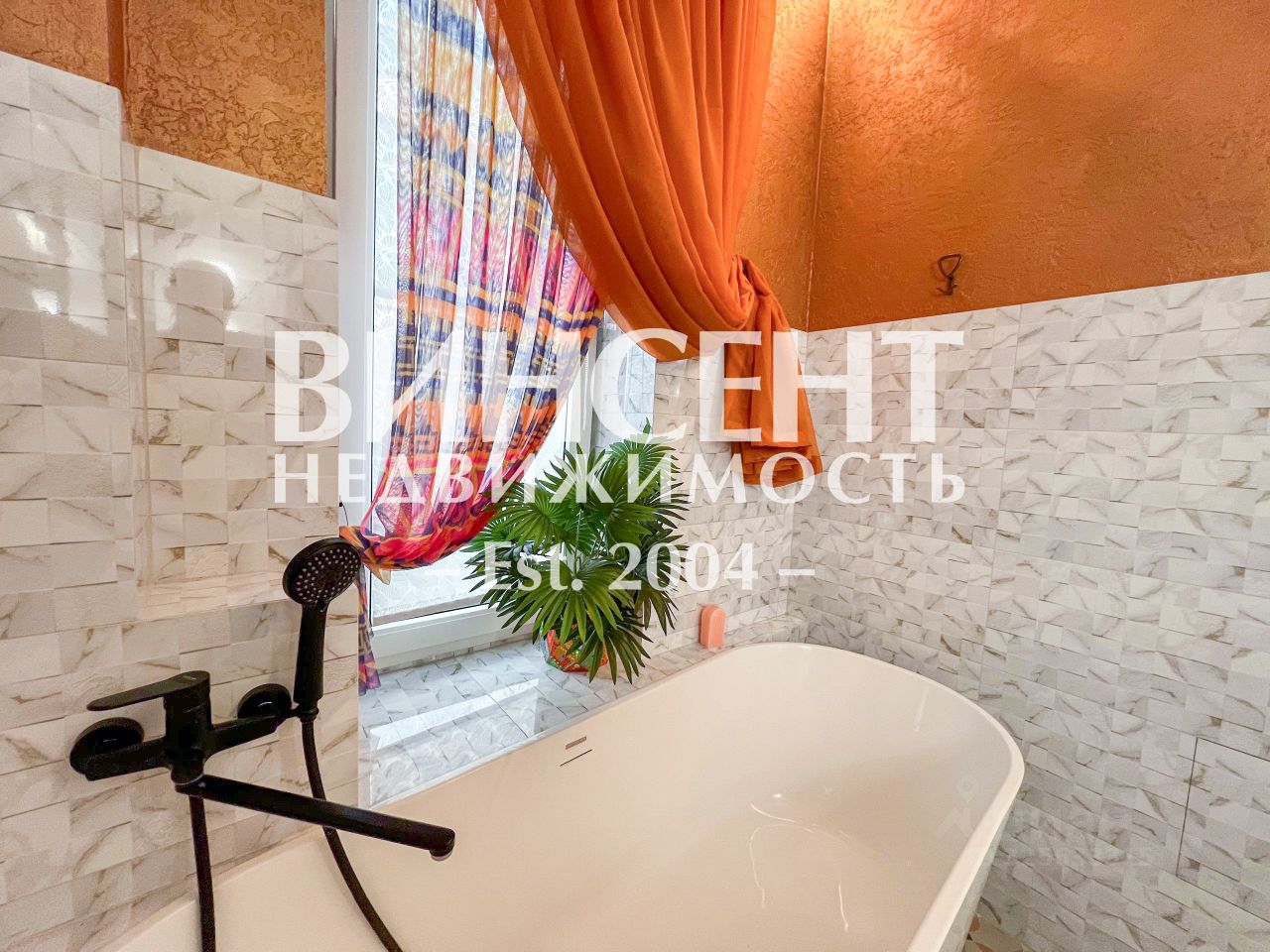Просторная ванная комната с окном, большая ванна из литьевого мрамора ESSE, душевая система. Стиральная машина Haier размещена в отдельном вместительном шкафу. Тёплые полы, продуманные сценарии освещения: люстры, бра, точечный свет, парящая потолочная подсветка. Большое количество розеток в удобных зонах. Качественные матрасы Askona премиум-класса, достаточное количество мест хранения.