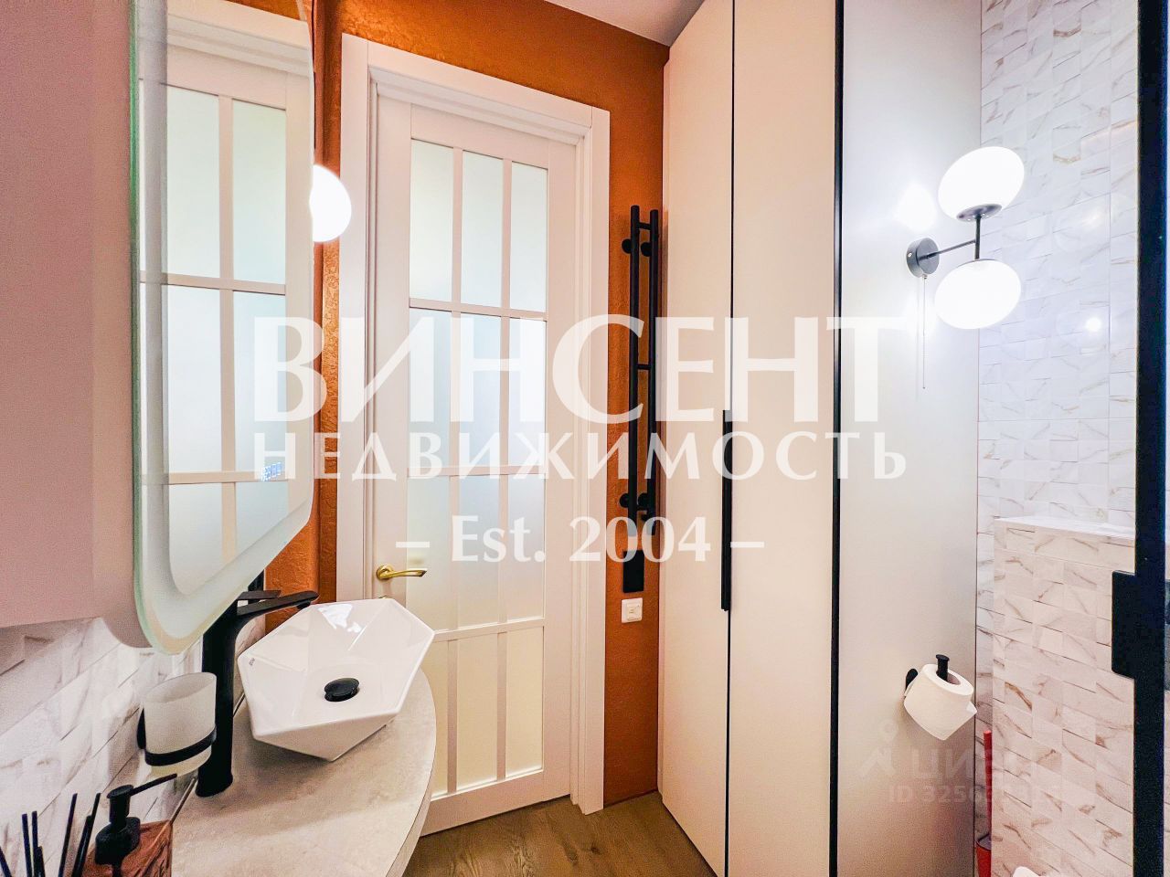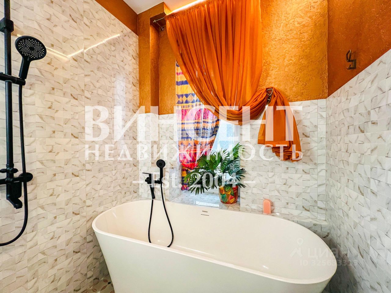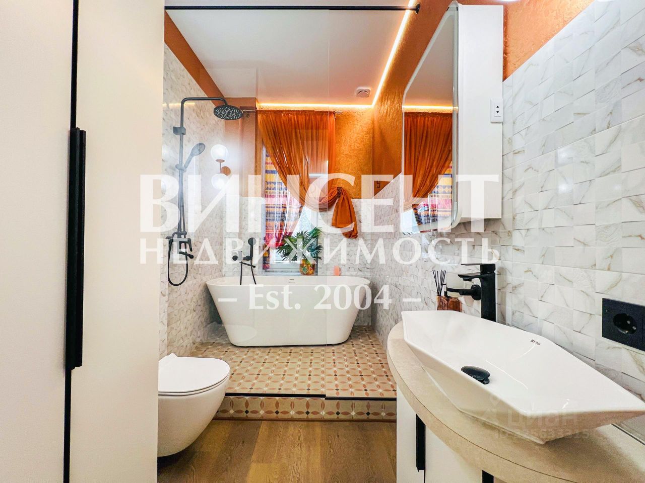 Просторная ванная комната с окном, большая ванна из литьевого мрамора ESSE, душевая система. Стиральная машина Haier размещена в отдельном вместительном шкафу. Тёплые полы, продуманные сценарии освещения: люстры, бра, точечный свет, парящая потолочная подсветка. Большое количество розеток в удобных зонах. Качественные матрасы Askona премиум-класса, достаточное количество мест хранения.