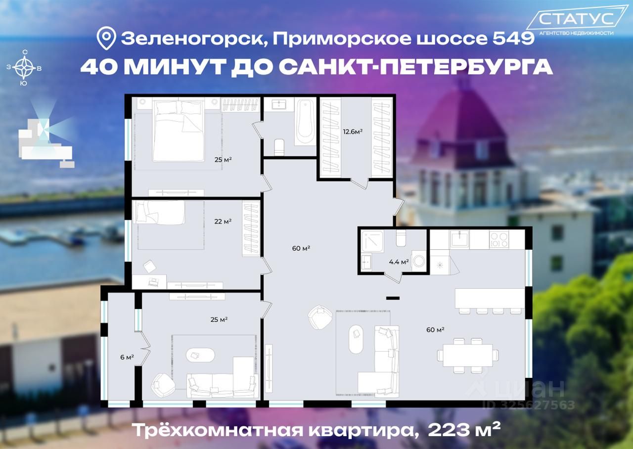 продам 3-к, Приморское шоссе, 54955 000 000 ₽