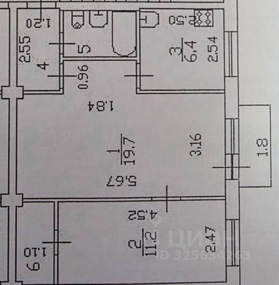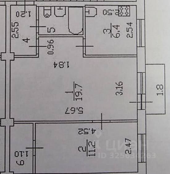 Комнаты 19,7 кв.м. и 11,2 кв.м., просторные, что позволяет легко зонировать пространство и располагать мебель с наибольшими удобными вариантами. Установлены стеклопакеты, имеются счетчики на воду, на свет и на газ. Из большой комнаты выход на балкон. Полы поменяны. Напольное покрытие в комнатах ламинат, на кухне линолеум. Кухня правильной квадратной формы 6,4 кв.м. Санузел совмещенный.