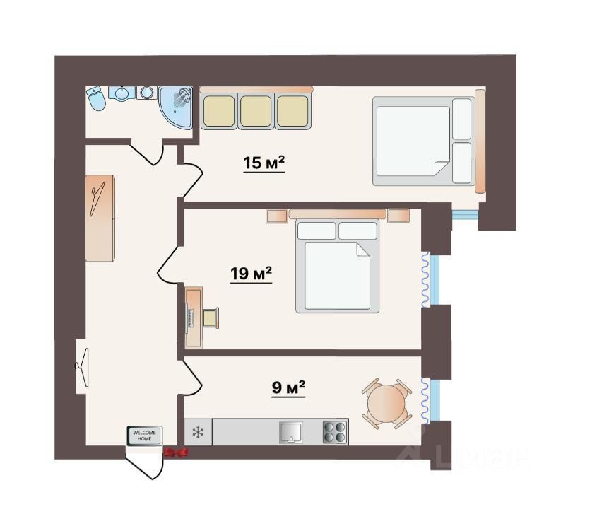 Квартира сдаётся в аренду без посредников. Комиссия отсутствует, потребуется внести залог. Идеально подходит для пары или семьи с одним ребёнком. Долгосрочная аренда приветствуется.