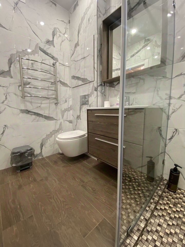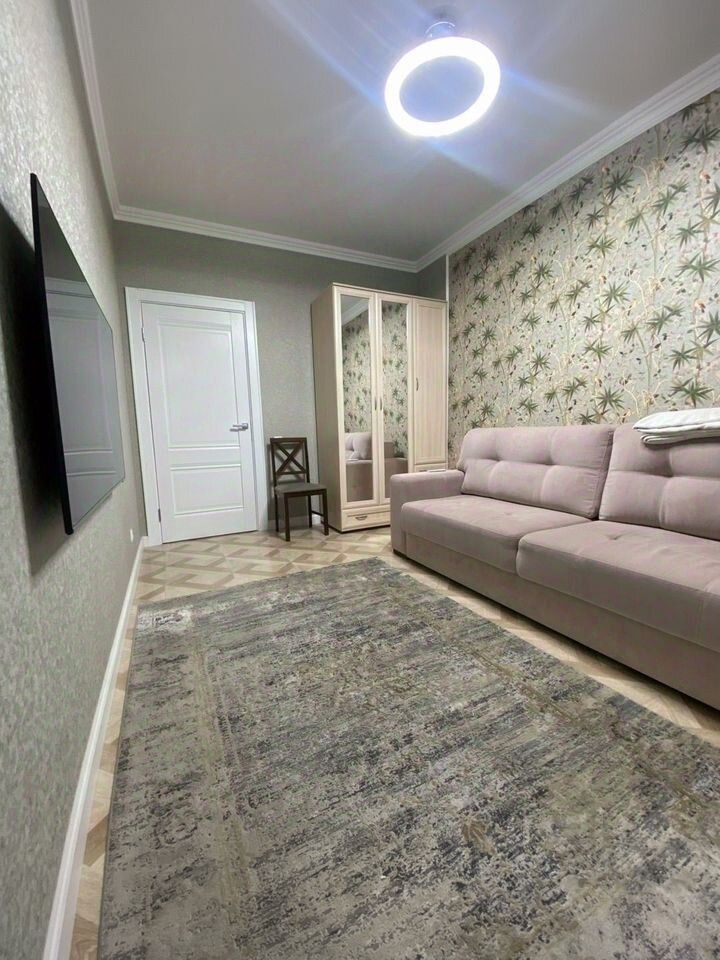 Внутри квартиры есть всё необходимое для комфортного проживания. Просторные комнаты меблированы, а на кухне установлена современная техника: холодильник, посудомоечная и стиральная машины, телевизор. Современная планировка и качественные материалы отделки создают атмосферу уюта и комфорта. Санузел оборудован всем необходимым.