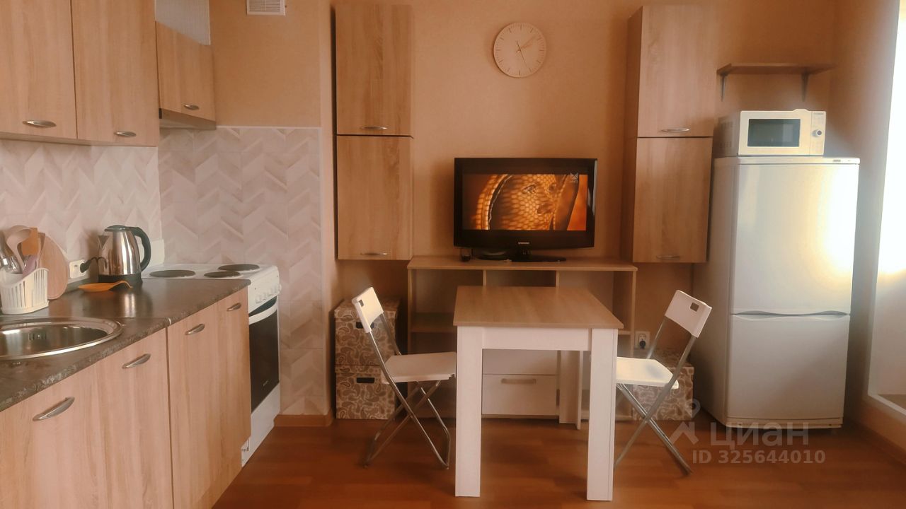 В квартире проведён косметический ремонт, что создаёт атмосферу уюта и комфорта. Студия полностью меблирована: есть мебель как на кухне, так и в жилой зоне. Большое преимущество два больших шкафа ,две кровати 90*200,которые при необходимости можно сложить в одну большую кровать. Кухонная зона занимает 5 кв. м и оборудована всем необходимым для приготовления пищи,включая небольшой набор посуды. В вашем распоряжении холодильник, телевизор и стиральная машина,плита,вытяжка,свч,утюг,роутер.Совмещённый санузел с ванной. Для удобства проживания проведён интернет.