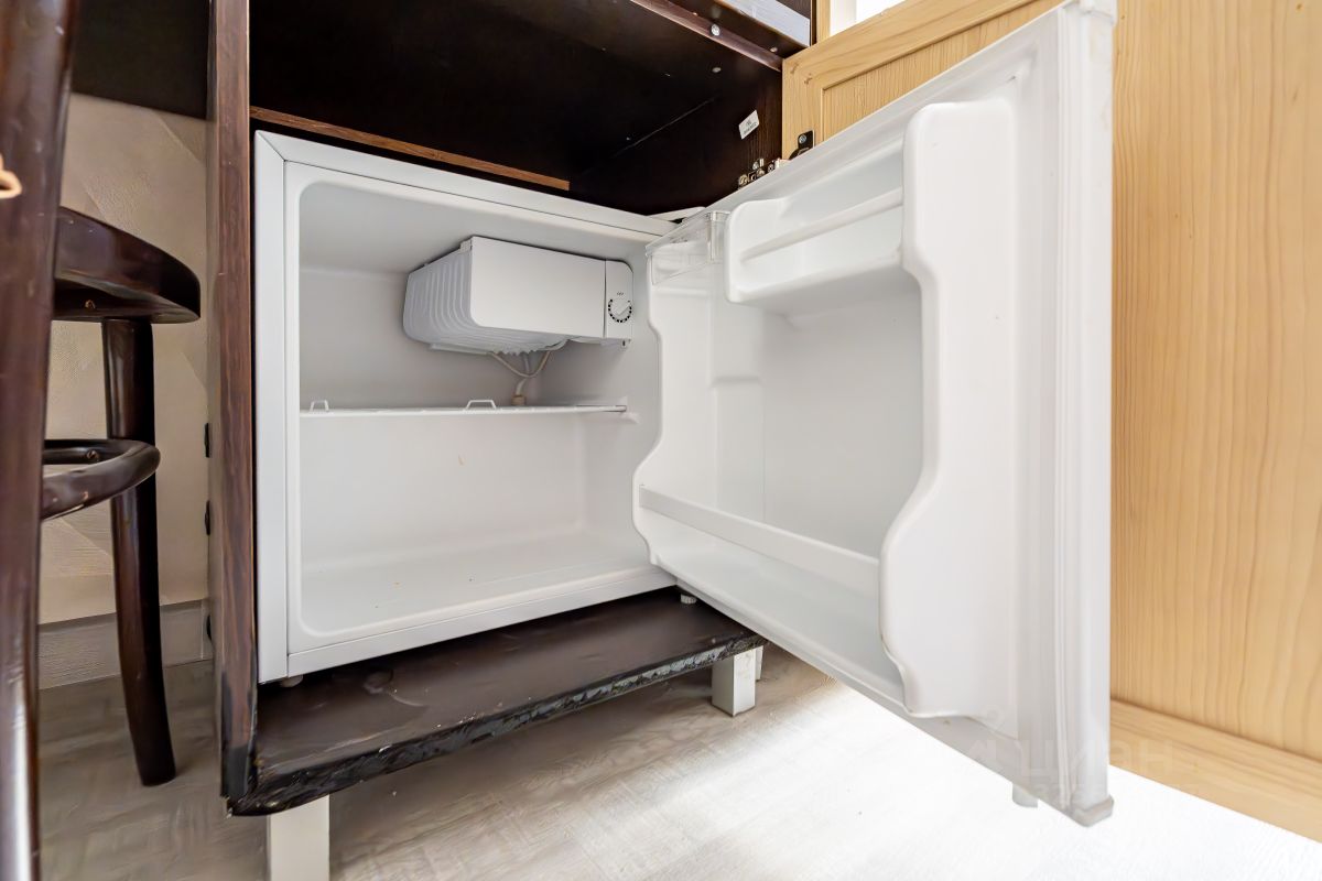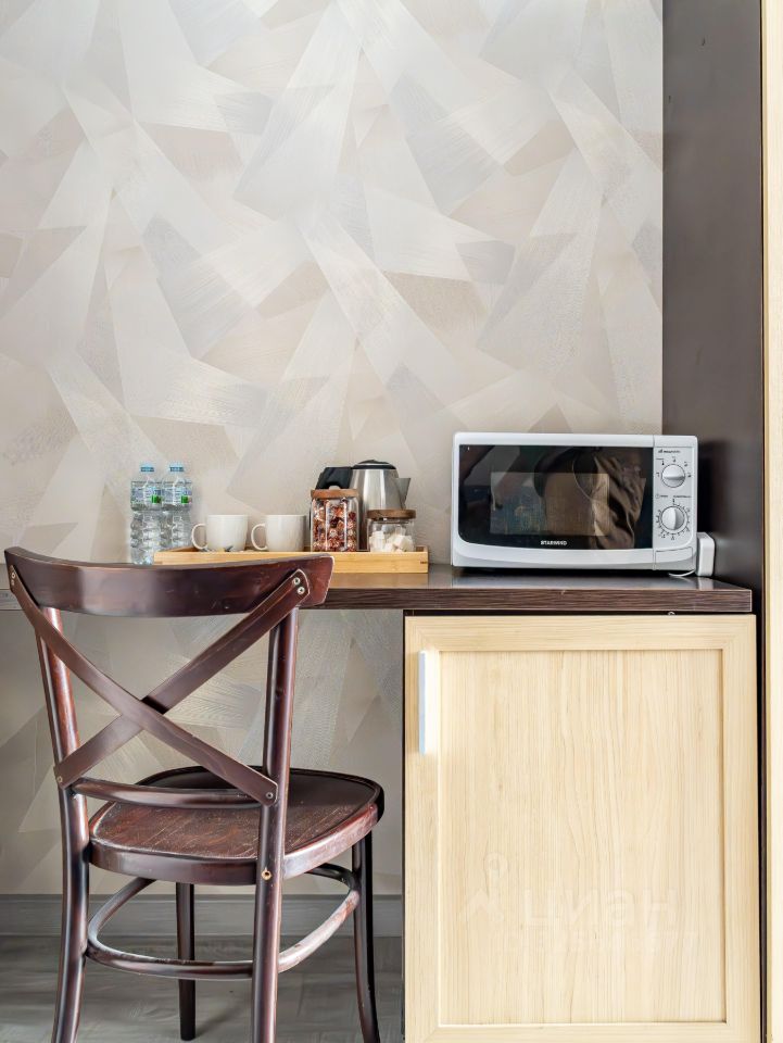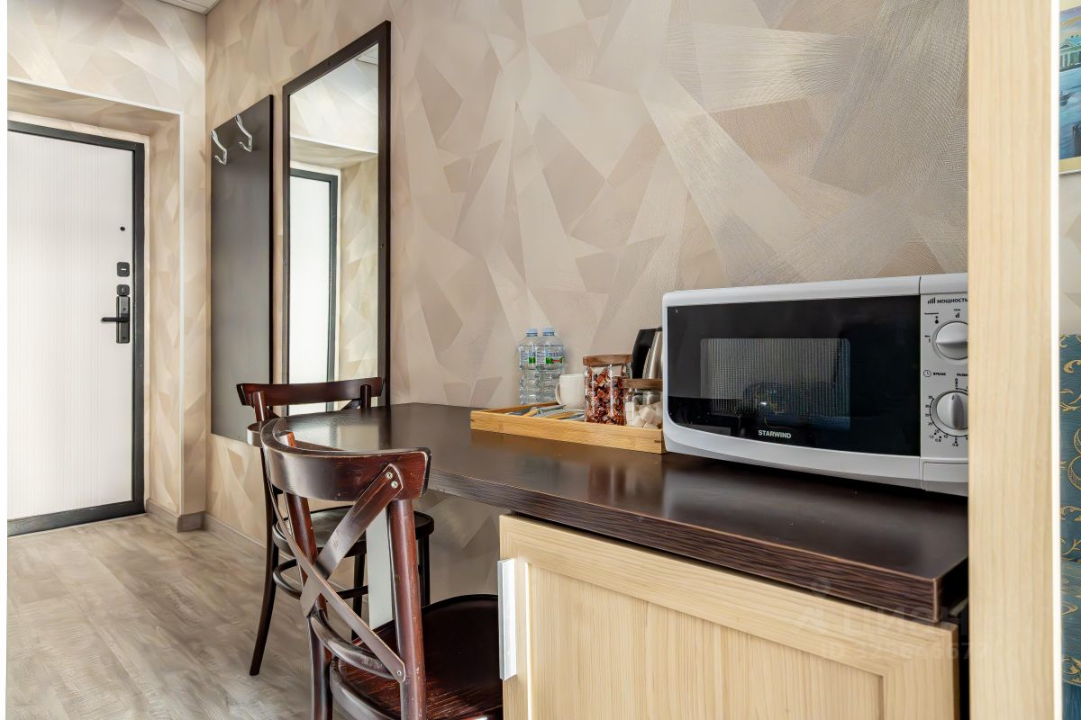 Техника: стиральная машина в студии, микроволновая печь, мини холодильник, телевизор, кондиционер, индукционная настольная плитка.
