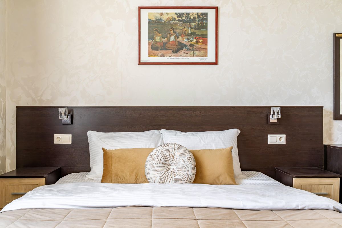 Мебель: двуспальная кровать 180 см, кресло, стол, стулья, два платяных шкафа.