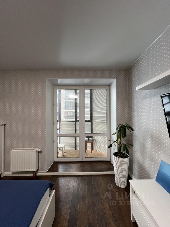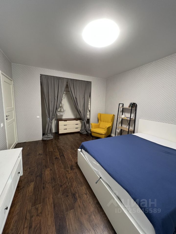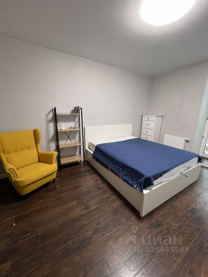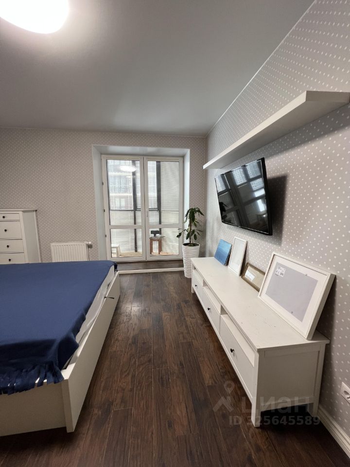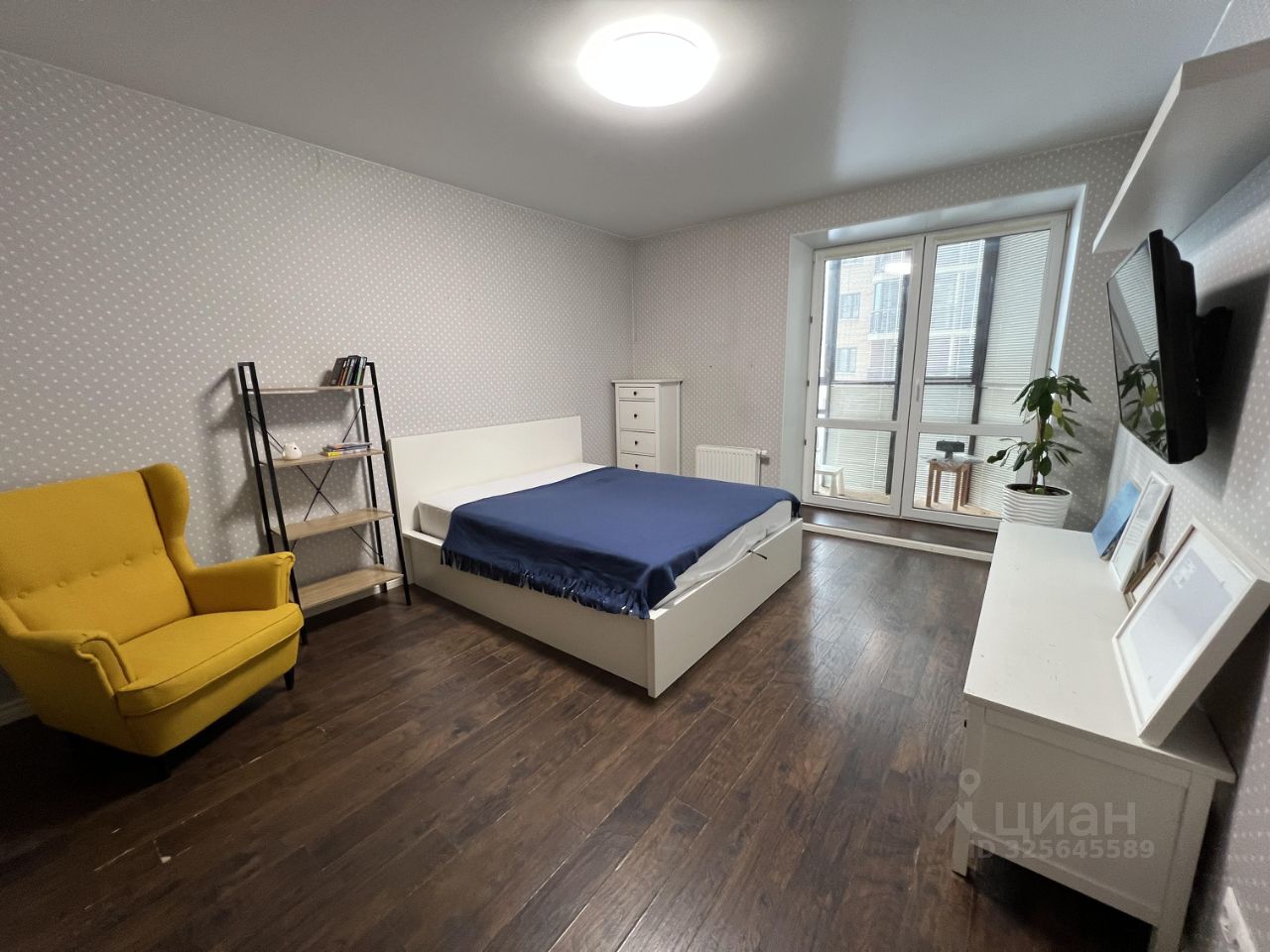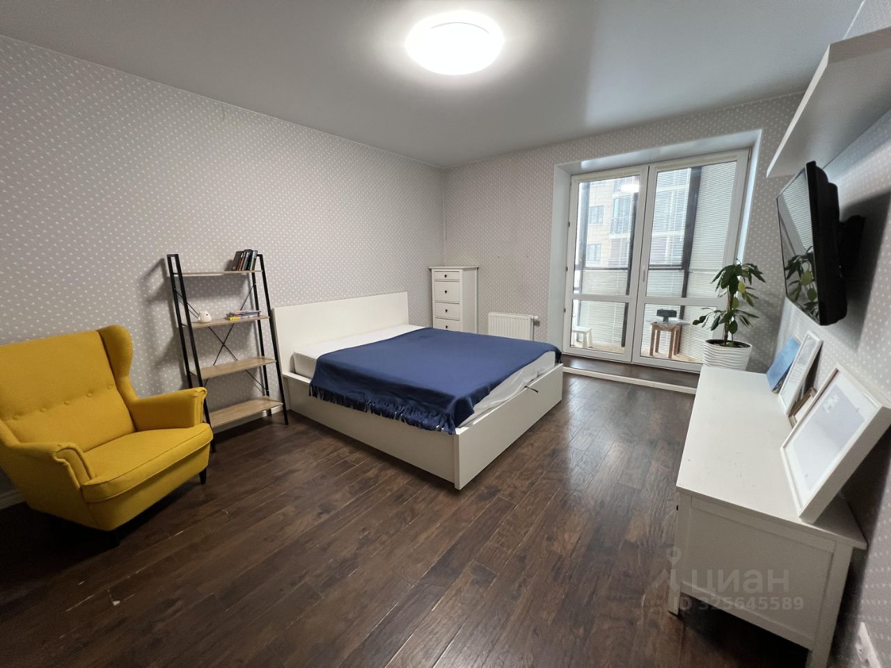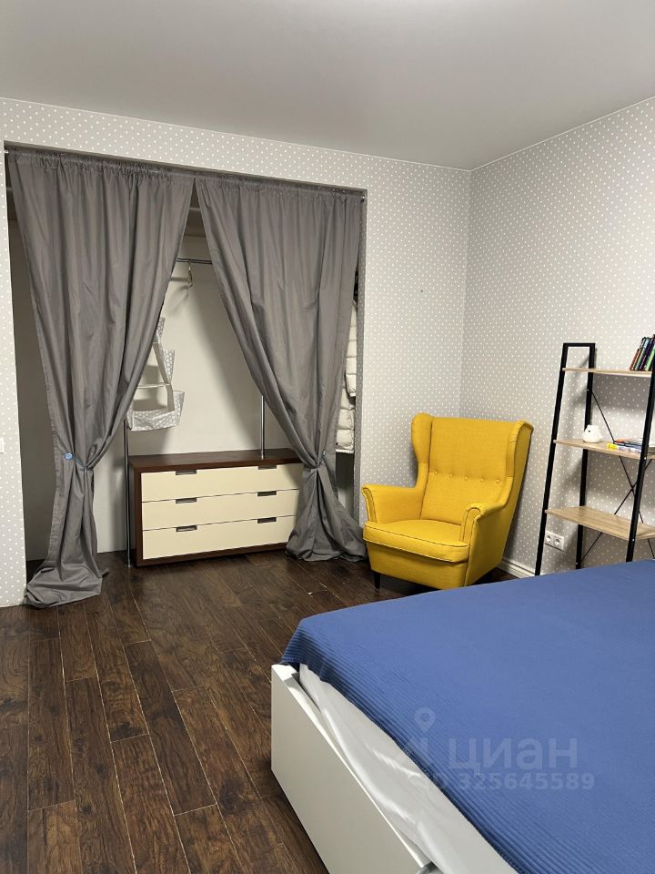В комнате: Телевизор, комфортная кровать с матрасом 160*200 см, удобное кресло. В гардеробной поместится вся крупная одежда, а комоды и стеллаж помогут упорядочить мелочи. В комнате панорамное окно с выходом на лоджию.
