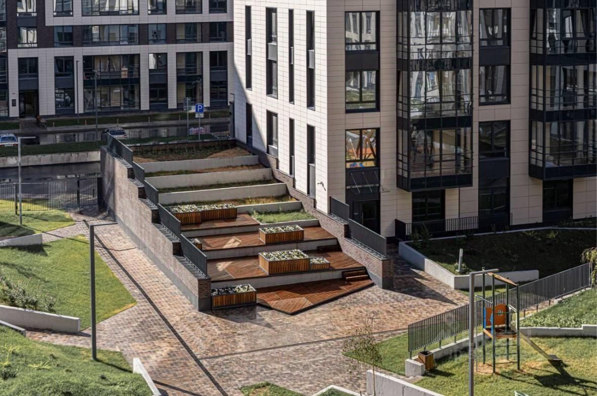 Двор закрытый, домофон, круглосуточное видеонаблюдение и охрана - это ваша безопасность. Жители могут наслаждаться комфортным и разумным устройством придомовой территории - есть разноуровневые террасы, на которых можно отдохнуть в теплое время года, спортивные и детские площадки, скамеечки и дорожки для прогулок.
