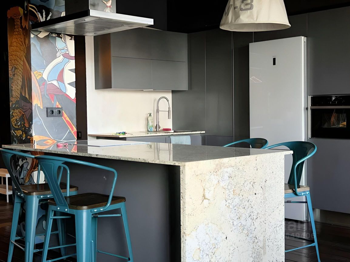 В квартире сделан евроремонт, что обеспечивает современный и стильный вид. Просторная кухня площадью 35 кв. м. полностью меблирована и оборудована необходимой техникой: холодильником, посудомоечной машиной и телевизором. В гостиной и спальне также есть мебель. Ванная комната с душевой кабиной и отдельный санузел для удобства. Один балкон с видом на улицу добавляет уют.
