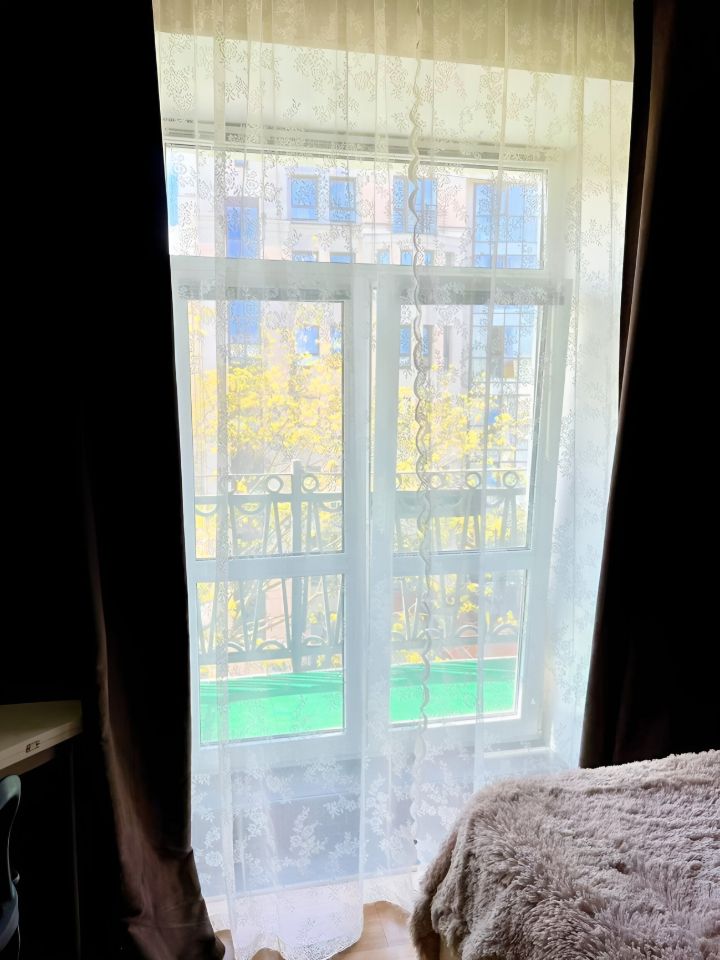 Много света, окна выходят в тихий просторный двор и на отель Марриот.