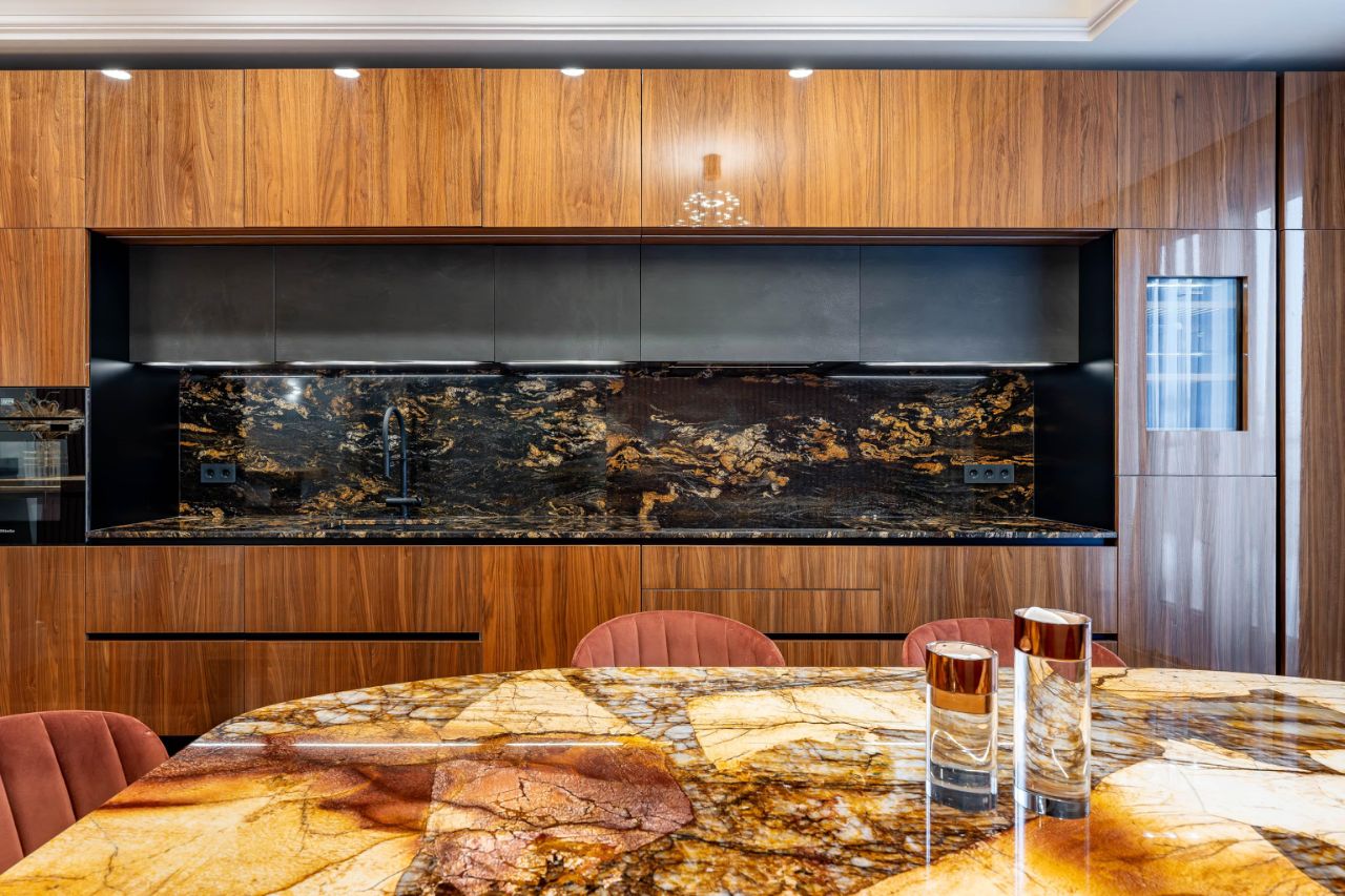 •Освещение от Ledmonster и BEZHKO •Кухонная зона MITTEL со столешницей из натурального камня, техника премиальных брендов MIELE и Liebherr •TERRAZZO и Porcelanosa в ванных комнатах •Пол - массив американский орех, потолок - натуральные гипсовые молдинги, двери и системы хранения - итальянского производства •Система приточно-вытяжной вентиляции и кондиционирования в каждой комнате •Прекрасные виды на воду со всех балконов и лоджий, много пространства и света, высокий этаж