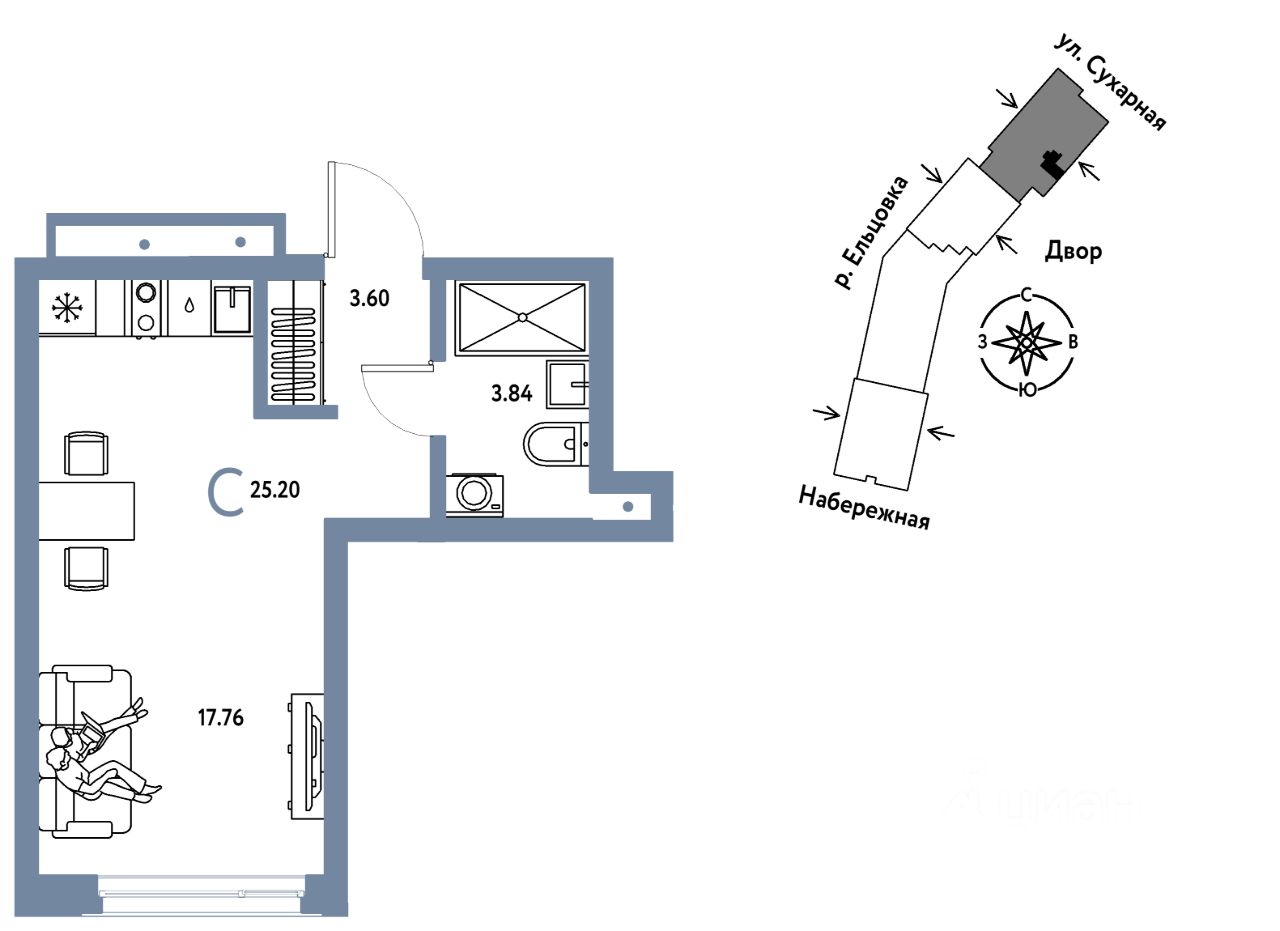 Продается 1комнатная квартира на 23 этаже от застройщика Страна Девелопмент. Площадь квартиры 25,2 кв. м.
