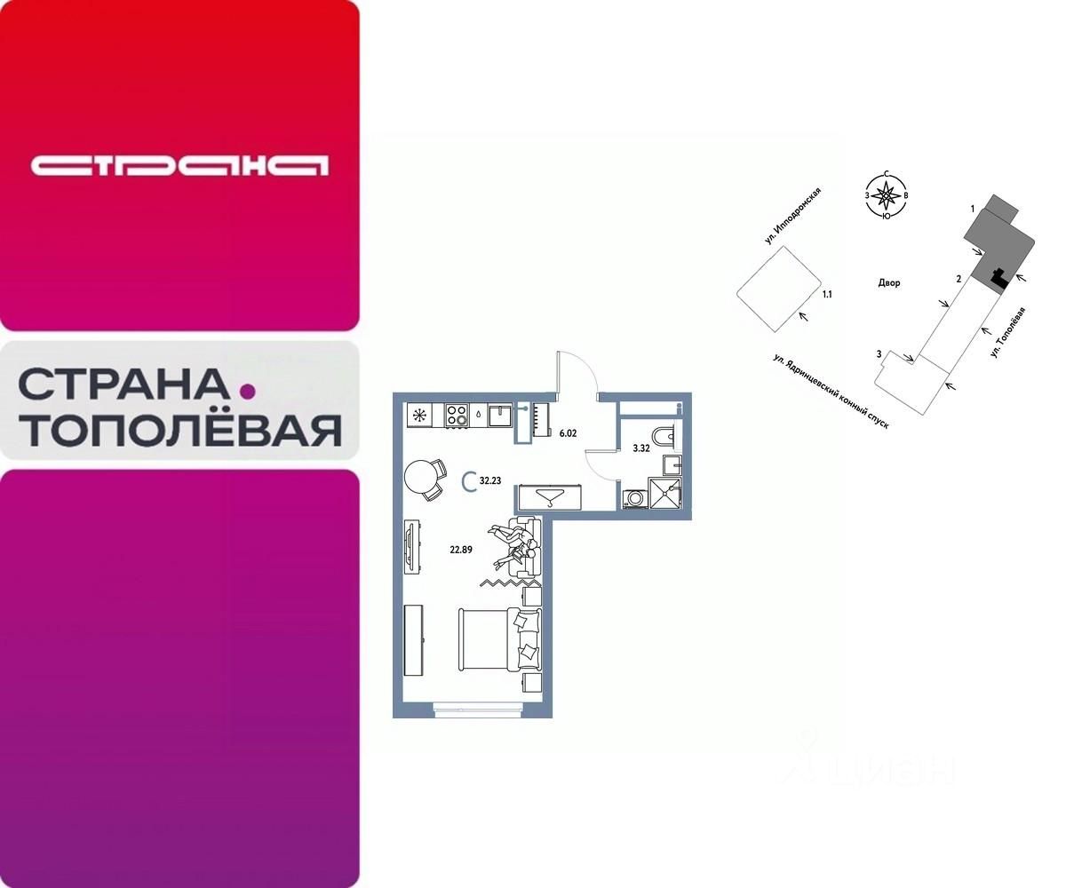 Продается 0комнатная квартира на 9 этаже от застройщика Страна Девелопмент. Площадь квартиры 32,23 кв. м.