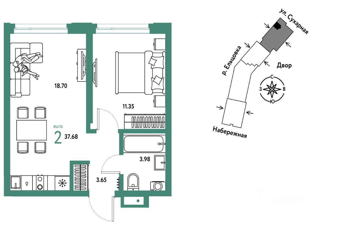 продам 2-к, 2-я Сухарная, 109/210 000 000 ₽