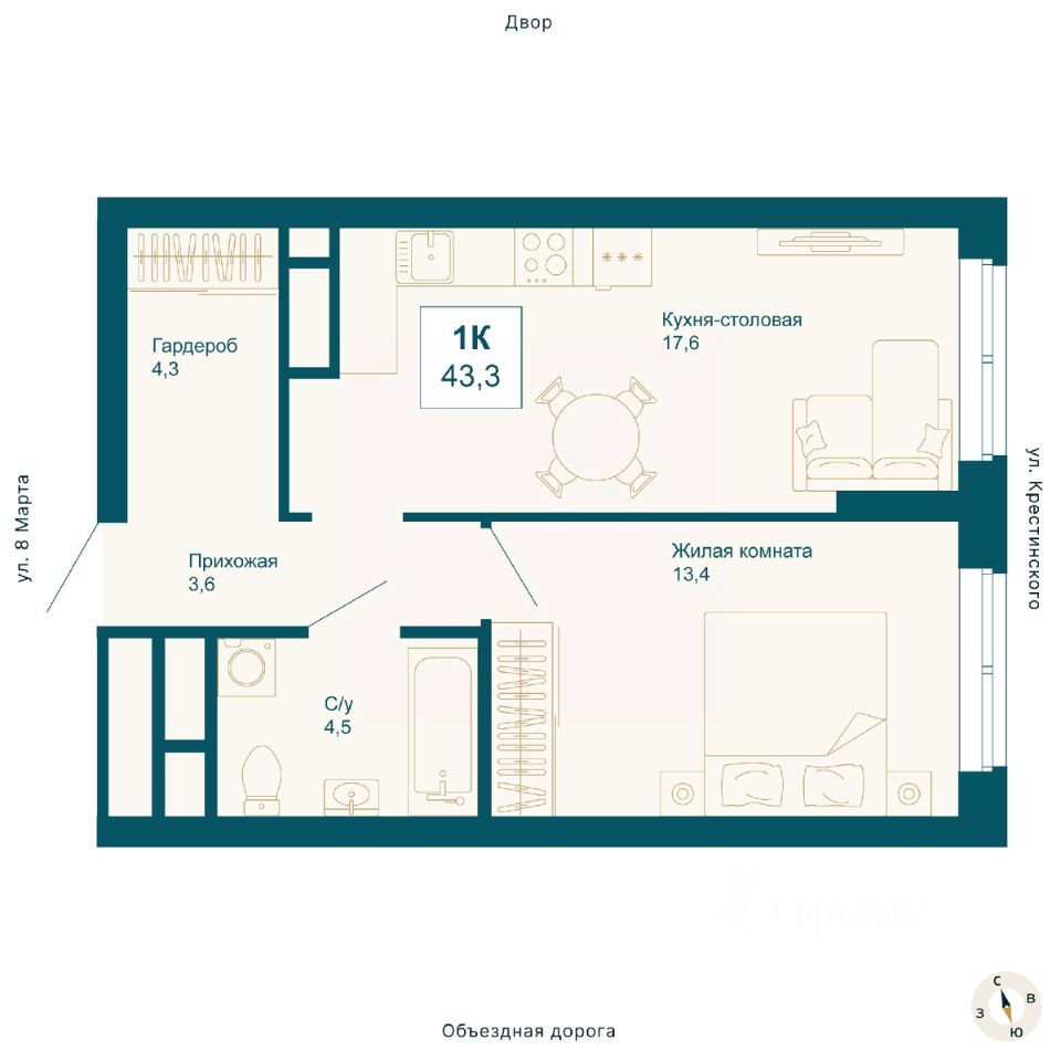 продам 1-к, 8 Марта, 1978 356 900 ₽