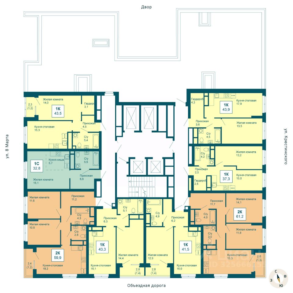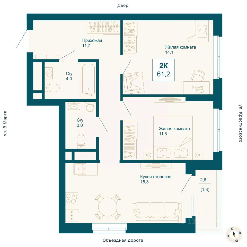 Общая площадь61,2 м2