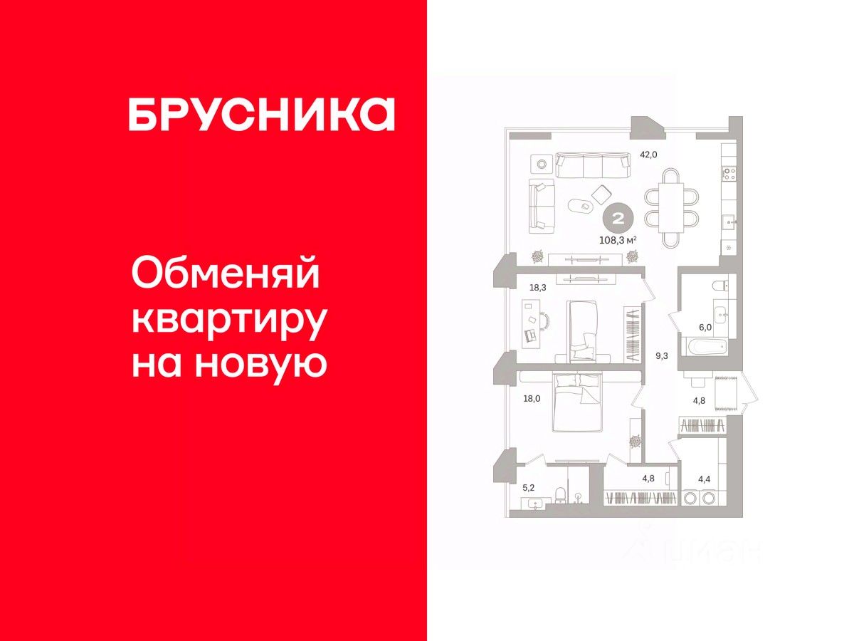 Просторная двухкомнатная квартира с предчистовой отделкой в ЖК ''Гоголя 21'' на 7 этаже. Общая площадь: 108.3 кв.м., жилая: 36.3 кв.м., площадь просторной кухни-столовой: 42 кв.м. Угловая квартира, идеально подойдет любителям тишины и панорамных видов. В квартире два совмещенных санузла. Высота потолков 2.98 м.