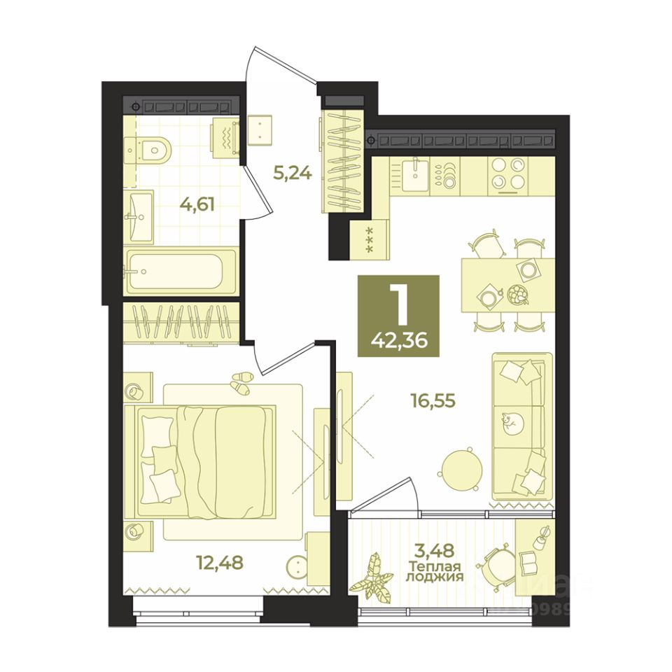 Общая площадь42,36 м2