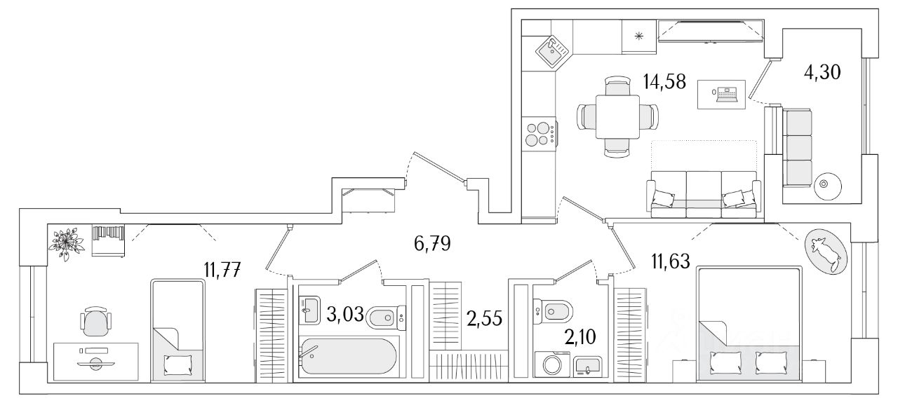 Кухни-гостиные с угловым остеклением. Просторные кухни-гостиные площадью более 20 м². Студии с двумя окнами. Ванные с окном Clerestory. Кухни-гостиные с выделенной нишей под кухню. Спальни с выделенной многофункциональной зоной, в которой можно организовать свой идеальный уголок. Квартиры с просторными лоджиями правильной квадратной формы.