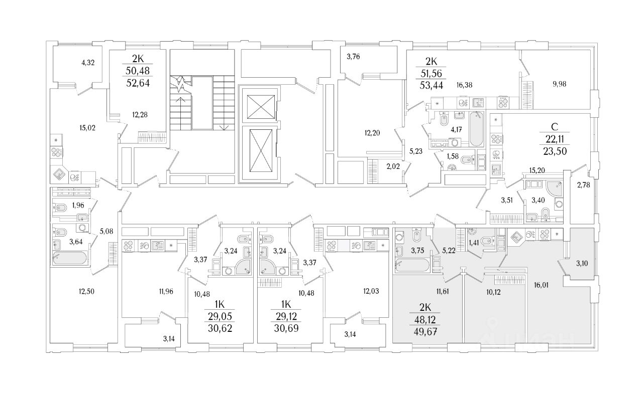 Кухни-гостиные с угловым остеклением. Просторные кухни-гостиные площадью более 20 м². Студии с двумя окнами. Ванные с окном Clerestory. Кухни-гостиные с выделенной нишей под кухню. Спальни с выделенной многофункциональной зоной, в которой можно организовать свой идеальный уголок. Квартиры с просторными лоджиями правильной квадратной формы.