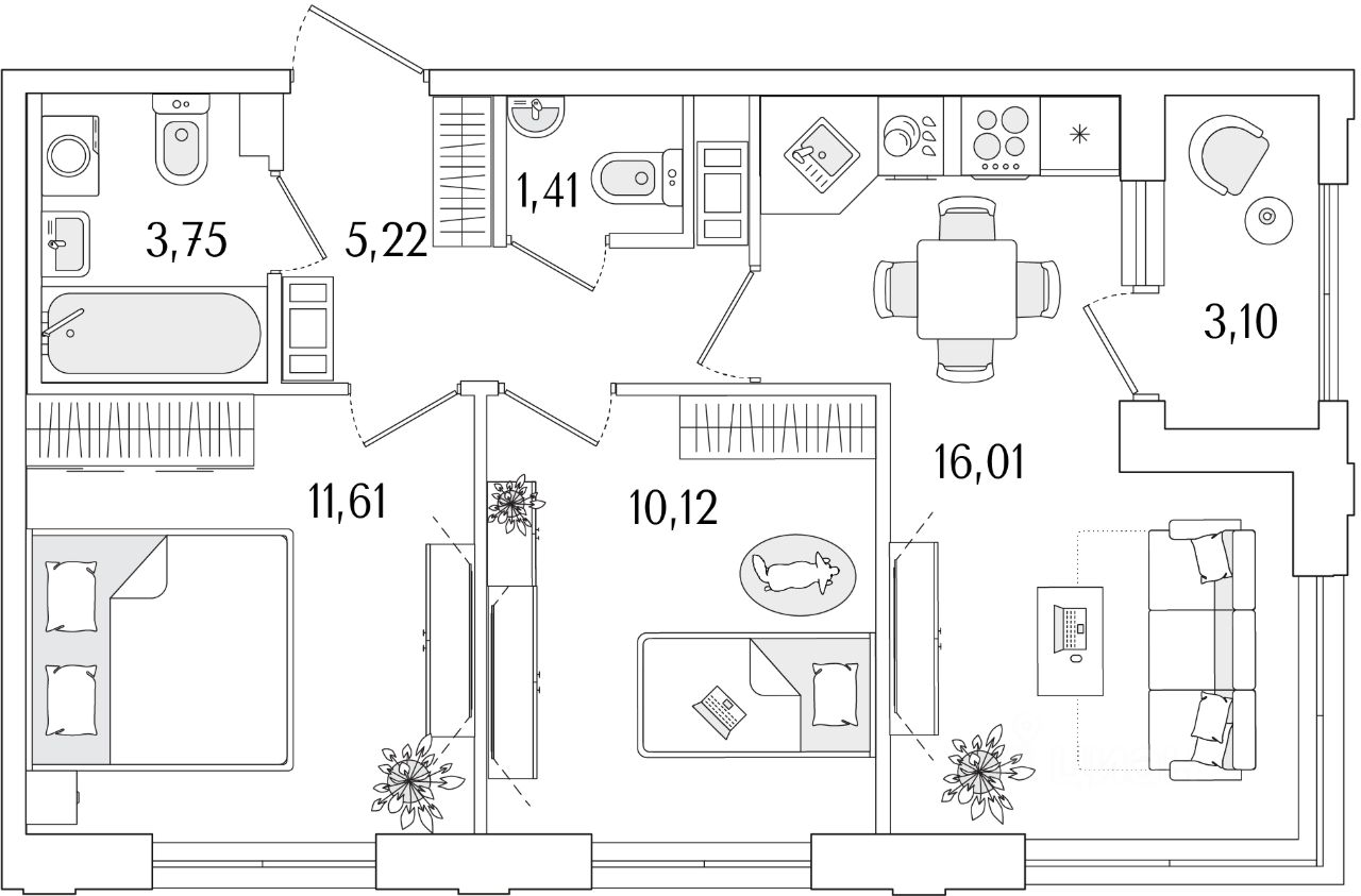 Кухни-гостиные с угловым остеклением. Просторные кухни-гостиные площадью более 20 м². Студии с двумя окнами. Ванные с окном Clerestory. Кухни-гостиные с выделенной нишей под кухню. Спальни с выделенной многофункциональной зоной, в которой можно организовать свой идеальный уголок. Квартиры с просторными лоджиями правильной квадратной формы.