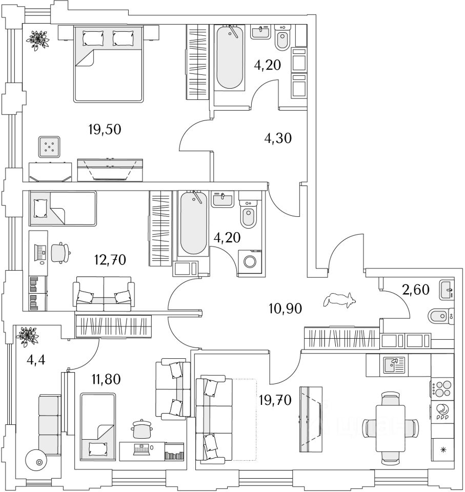 Продаётся 3к.кв. в ЖК Тайм Сквер от застройщика Холдинг ''РСТИ'' (Росстройинвест). Квартира находится в 13 этажном доме, в Корпус К7 - Тайм Сквер на 12 этаже. Общая площадь квартиры 92,80 кв.м.