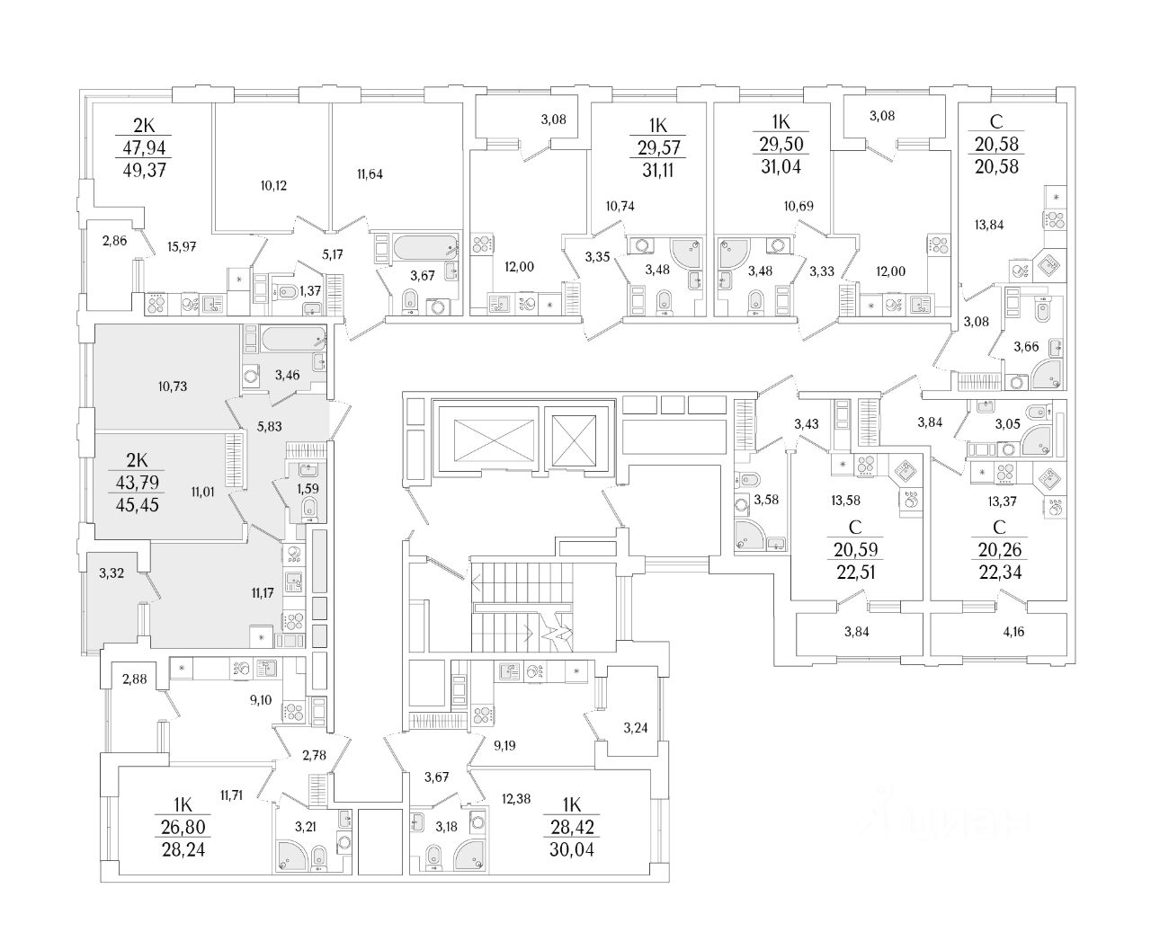 Кухни-гостиные с угловым остеклением. Просторные кухни-гостиные площадью более 20 м². Студии с двумя окнами. Ванные с окном Clerestory. Кухни-гостиные с выделенной нишей под кухню. Спальни с выделенной многофункциональной зоной, в которой можно организовать свой идеальный уголок. Квартиры с просторными лоджиями правильной квадратной формы.