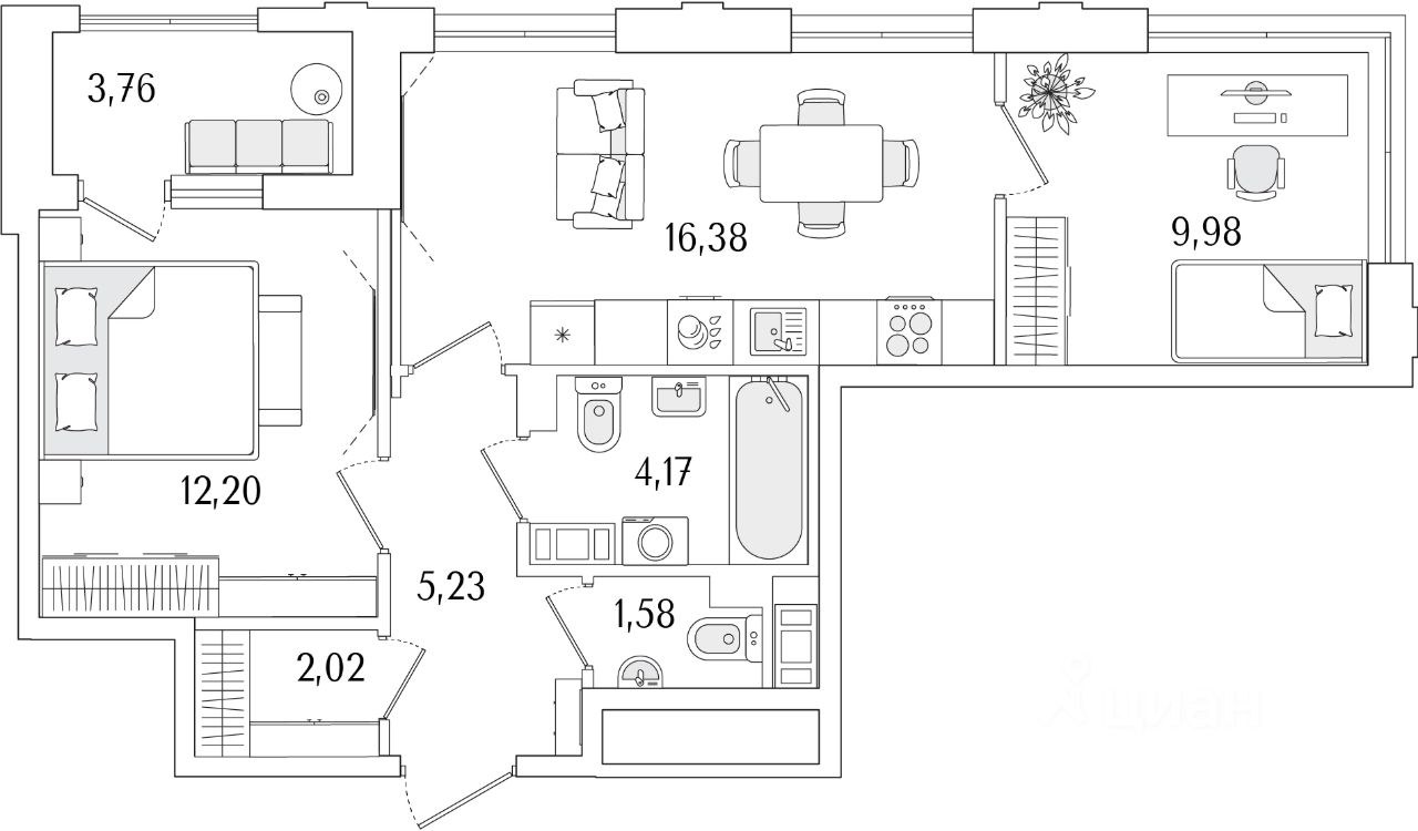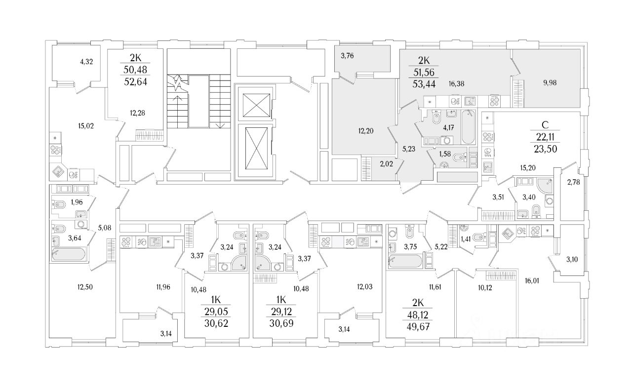 Кухни-гостиные с угловым остеклением. Просторные кухни-гостиные площадью более 20 м². Студии с двумя окнами. Ванные с окном Clerestory. Кухни-гостиные с выделенной нишей под кухню. Спальни с выделенной многофункциональной зоной, в которой можно организовать свой идеальный уголок. Квартиры с просторными лоджиями правильной квадратной формы.