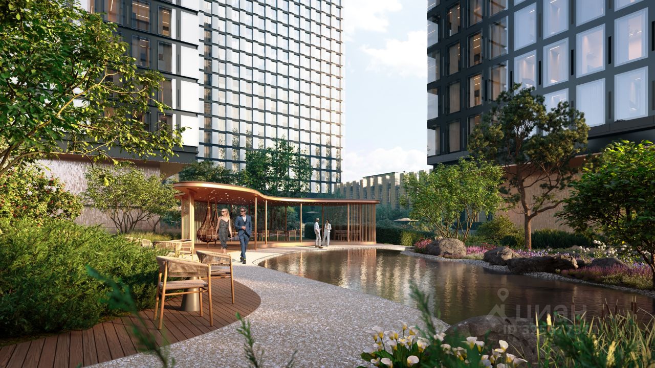 Просторная светлая квартира площадью 55,1 кв. м с окнами, выходящими в тихий приватный двор-парк с продуманным ландшафтным дизайном. Из кухни-гостиной открывается вид на пруд, а панорамное остекление делает его особенно зрелищным. Продуманная планировка позволяет разместить отдельную спальню с санузлом и гардеробной.