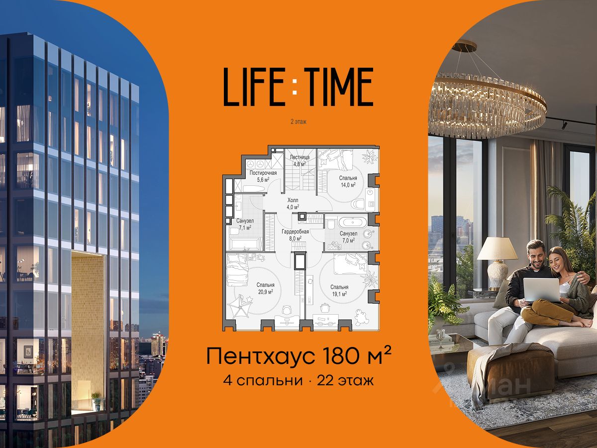Life Time - роскошный современный квартал на Пресне, в наиболее быстро растущем премиальном районе ЦАО. Его насыщенная инфраструктура и выгодное расположение дарят время для жизни. Вы больше не тратите его на дорогу или ожидание, при этом ни в чём себе не отказывая. На территории предусмотрено всё для комфортной жизни: • двор-парк площадью 1,8 гектара с прудом и фонтанами, • Clubhouse - инфраструктурный центр в отдельном здании с исчерпывающими возможностями для спорта, отдыха и досуга только для жителей, • спортивная инфраструктура на улице и в помещении, в том числе бассейн длиной 25 метров, хот-таб, хаммам, сауна, бьюти-зона, • клубная гостиная с террасой, • всё для развития и досуга детей любого возраста, в том числе детский сад и школа. Life Time находится в центре сложившегося премиального района, в окружении многочисленных парков. Удобная транспортная доступность и прямой выезд на Звенигородское шоссе позволяют без проблем добраться до Садового кольца и Москва-Сити. Архитектурный стиль квартала - роскошный минимализм. Дома десятилетиями будут выглядеть современно.