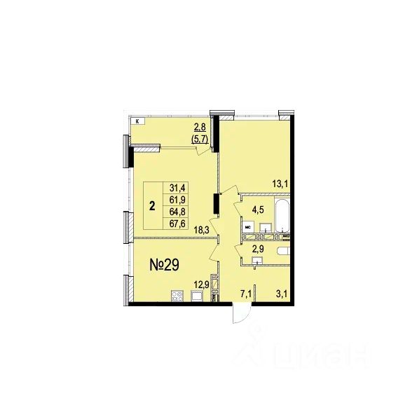 Продаётся 2-комнатная квартира в сданном доме (Дом 6В), срок сдачи: IV-кв. 2025, общей площадью 64.8 кв.м., на 5 этаже. Жилой дом от застройщика ''Светлояр''расположен на улице Лисицына в Кировском районе.