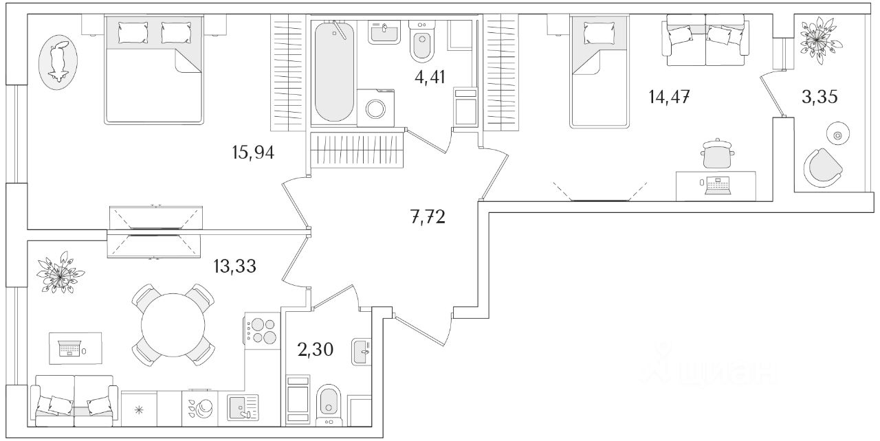 Продаётся 2к.кв. в ЖК Кинопарк от застройщика Холдинг ''РСТИ'' (Росстройинвест). Квартира находится в 9 этажном доме, в Очередь 2, Корпус 2 на 6 этаже. Общая площадь квартиры 59,85 кв.м.