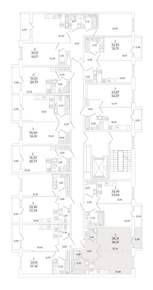 Общая площадь39,51 м2