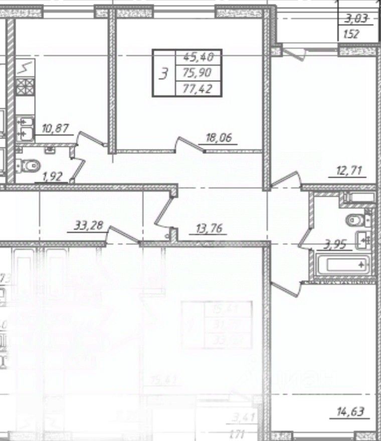 Нейтральный ремонт от застройщика, окна на две стороны, есть застеклённая лоджия, два санузла.